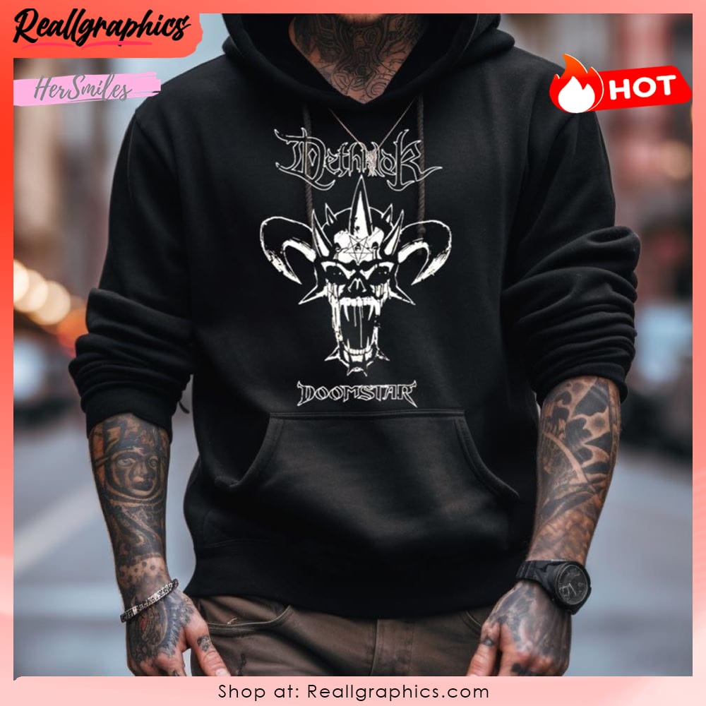The Festival Supreme Dethklok Doomstar Unisex Shirt is a unique and edgy piece of clothing that embodies the spirit of the popular music festival. This shirt is not for the faint of heart, featuring dark and bold designs that appeal to fans of heavy metal and doom metal music. It showcases a graphic print that combines elements of horror and mysticism, creating a visually striking and menacing aesthetic. Made from high-quality materials, this unisex shirt is comfortable to wear and allows fans to proudly display their love for the Festival Supreme and the iconic band Dethklok.