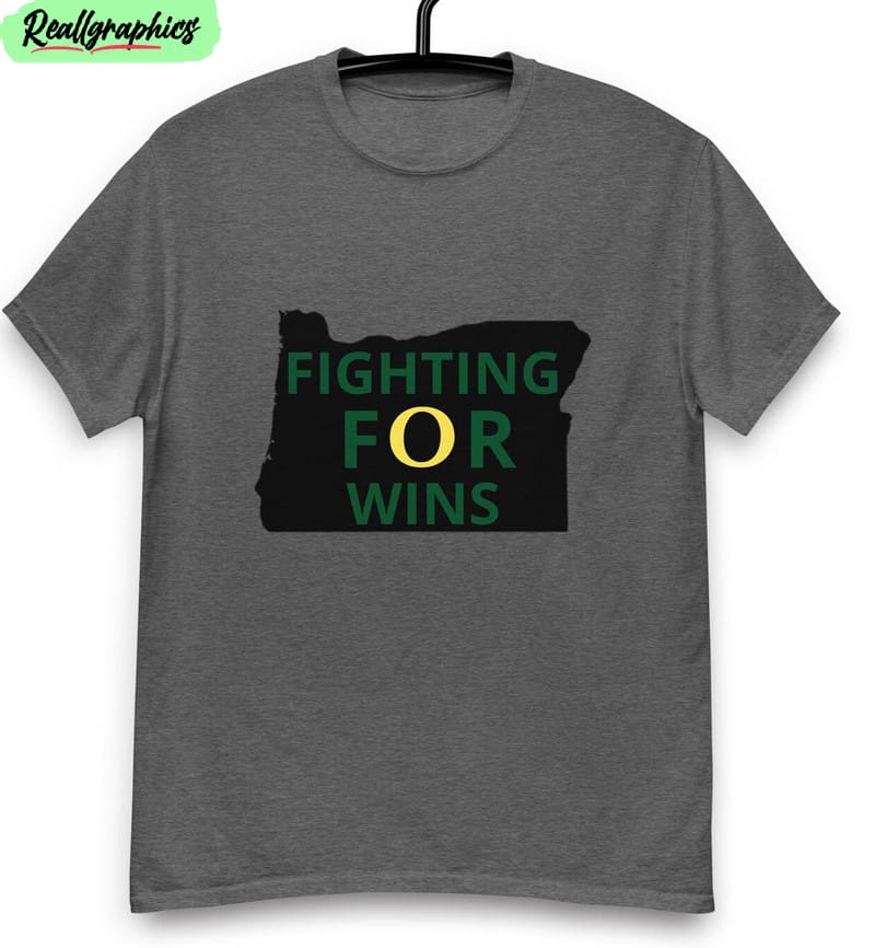 Rooting for your favorite team has never been more fashionable with the Fighting For Wins Oregon Ducks Shirt Trendy Football Unisex T-Shirt Unisex Hoodie. Show your team spirit in style with this trendy apparel that is perfect for any football enthusiast. Made with high-quality materials, this shirt and hoodie are not only comfortable but also durable. Whether you’re watching the game at home or cheering from the stands, this apparel is a must-have for any true fan. Get ready to rally for victory with the Fighting For Wins Oregon Ducks Shirt Trendy Football Unisex T-Shirt Unisex Hoodie!