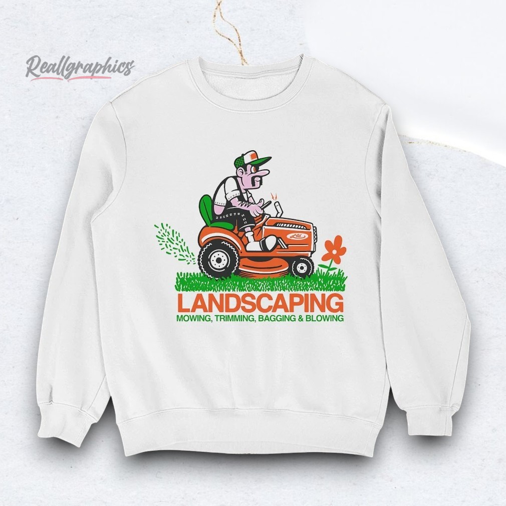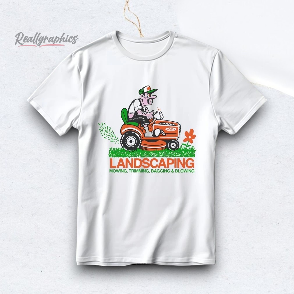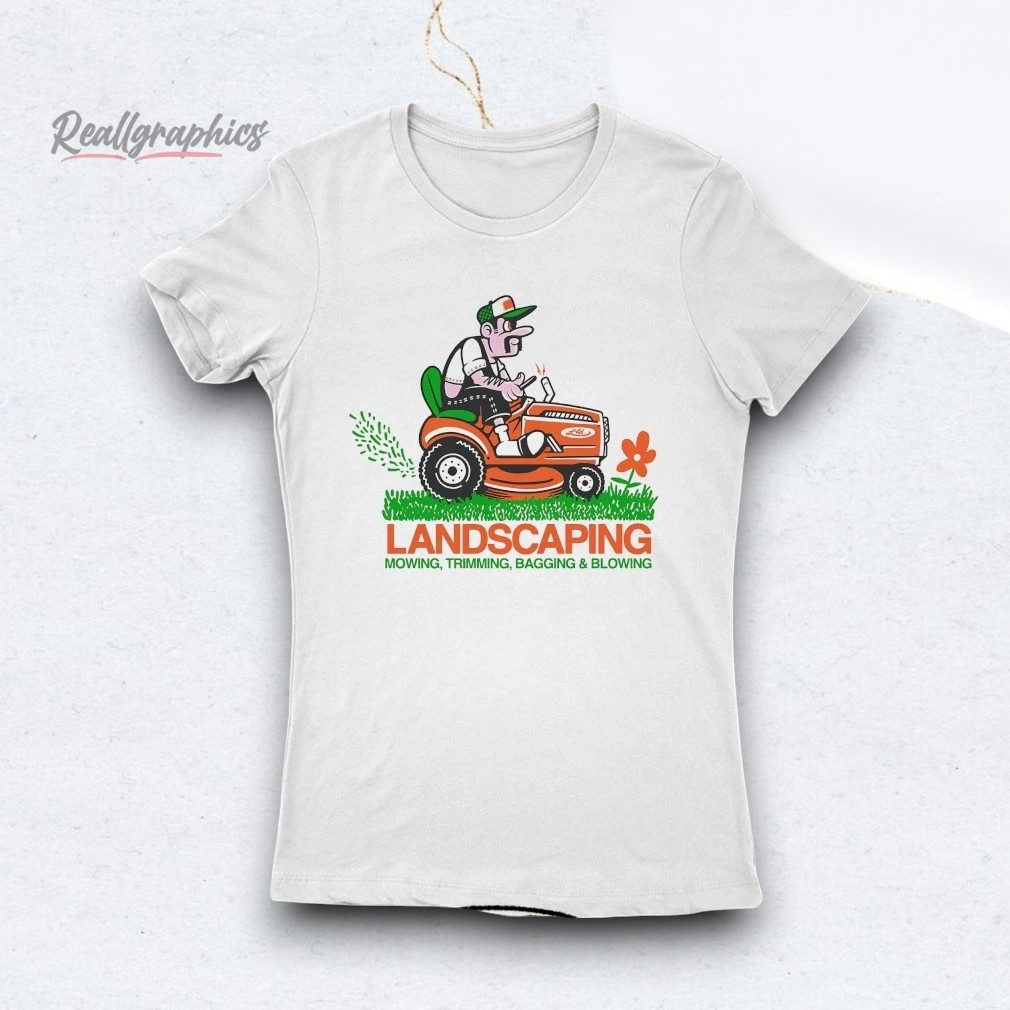 Frowning Man Landscaping Mowing Trimming Bagging And Blowing Shirt