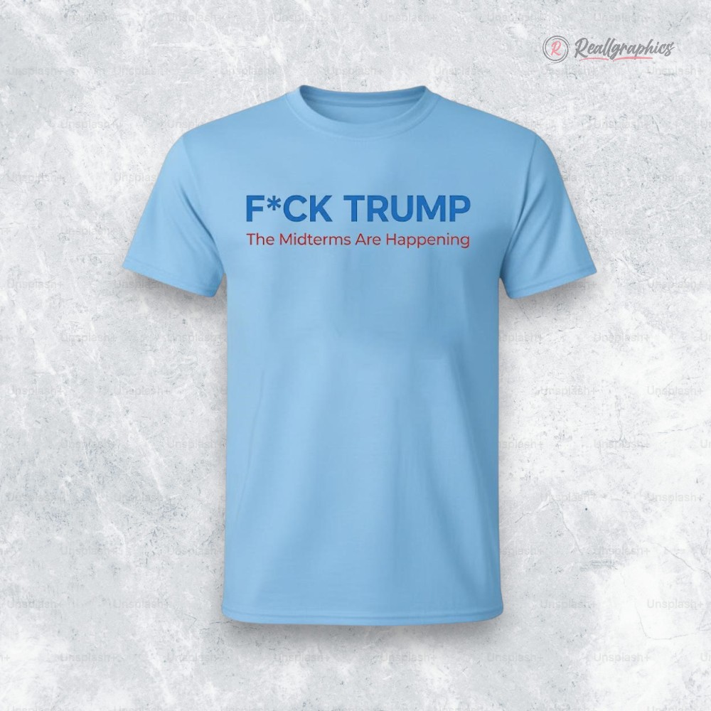 Bright cobalt blue stretches across the fabric, serving as a backdrop for a defiant declaration. The words “F*CK TRUMP” dominate the chest in thick, unyielding sans-serif letters, the kind that demand attention without hesitation. Beneath, a narrower line in vivid red quietly insists: “The Midterms Are Happening.” It’s a pairing of colors and words that feels urgent, contagious. This isn’t a shirt meant to fade into any crowd; it’s designed for someone who carries their convictions on their sleeve—literally. There’s a kind of raw authenticity to it, the way the bold typography contrasts with the subtler subtitle. It’s like shouting a protest chant on a downtown corner but tempered enough for everyday wear. This is not about polite conversation or quiet agreement; it’s an invitation to stand firm, a wearable statement for those who navigate their world through political fire and fierce belief. For someone who’s often heading to rallies, debates, or just wants their wardrobe to reflect their stance without dilution, this shirt becomes more than fabric. It’s a piece of identity. Toss it on with faded jeans, a sturdy jacket, and worn sneakers, and you’re set for the day, whether that’s a protest march or a weekend with friends who share your passion. The f*ck trump the midterms are happening shirt isn’t a casual nod or a subtle hint. It’s the kind of shirt that fits a bold voice in a complicated time—an artwork of opinion, unapologetic and vibrant.