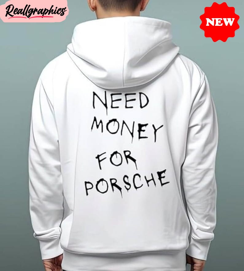 This hilarious shirt is sure to grab the attention of any car lover. With a clever slogan that suggests the wearer is in need of money to buy a Porsche, it is bound to generate some laughs. The shirt, available in various styles such as hoodie, sweatshirt, and more, is a great addition to any wardrobe. Its humorous design and playful font make it a perfect conversation starter. Whether you are attending a car show or simply love the thrill of fast cars, this shirt is a must-have. Get ready to turn heads and bring smiles with this funny and stylish piece of clothing.