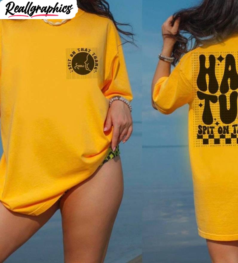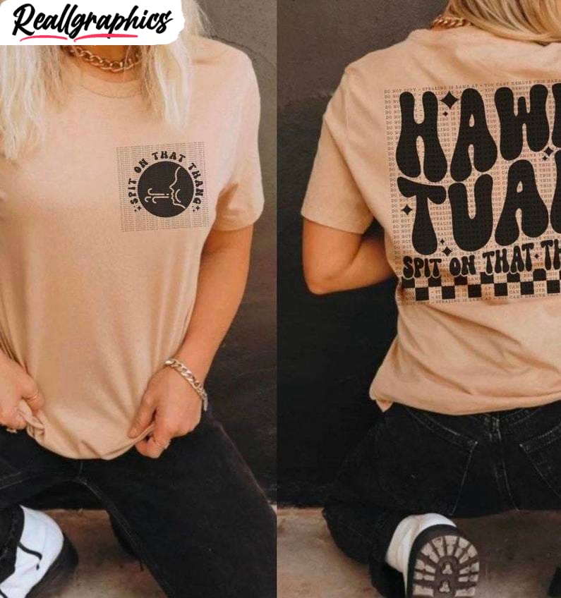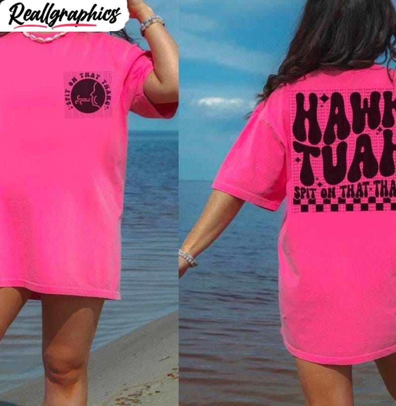 Stay cool and stylish this summer with our latest collection of trendy and fun unisex hoodies, t-shirts, and sweatshirts. The Trendyhawk Tuah Spit On That design adds a touch of humor and uniqueness to your wardrobe, perfect for standing out at any summer event. Made with high-quality materials and available in a variety of sizes, these pieces are sure to be your go-to choice for staying comfortable and fashionable all season long. Don't miss out on this must-have summer staple!Funny Summer Unisex Hoodie, Trendyhawk Tuah Spit On That Hang T-Shirt, Hoodie, Sweatshirt