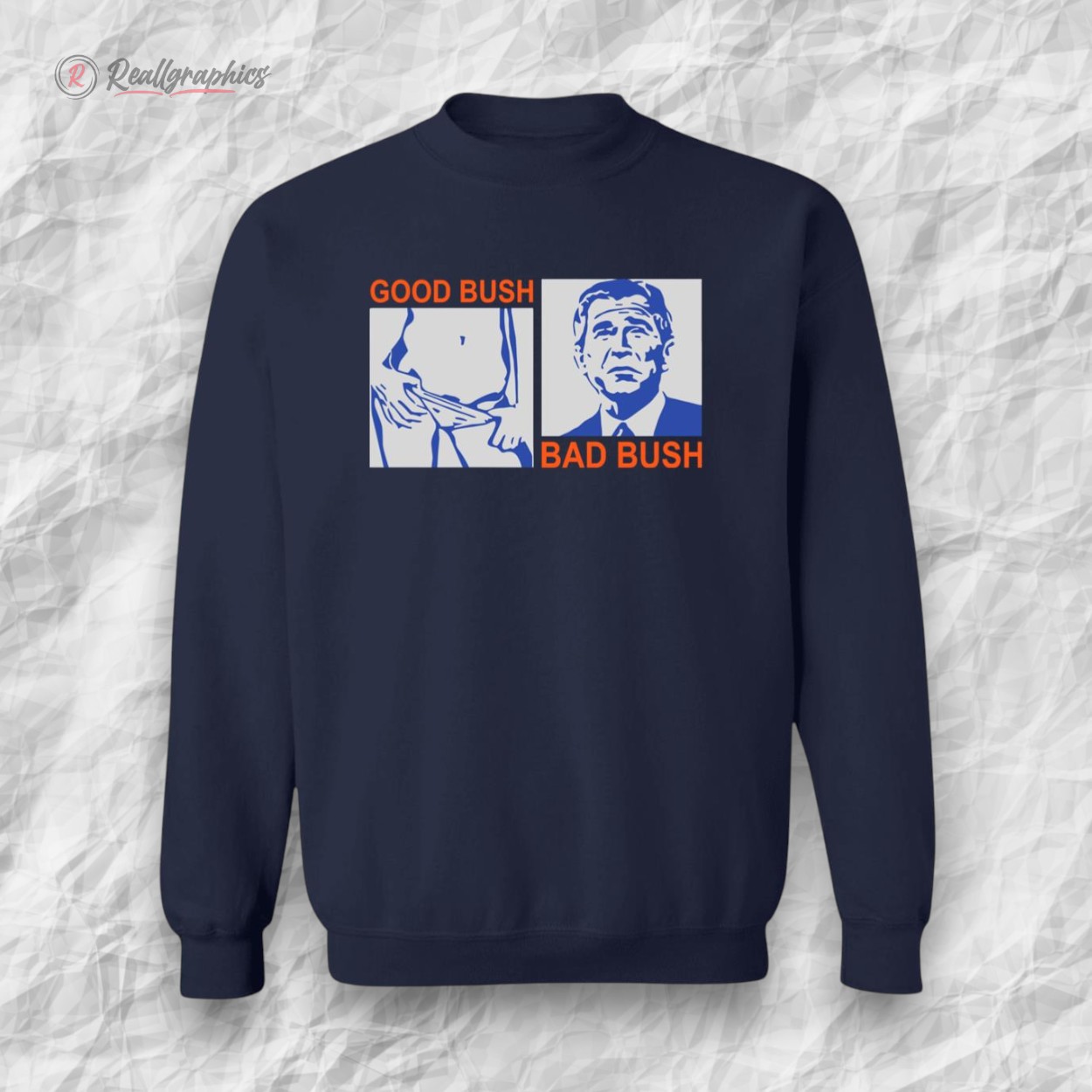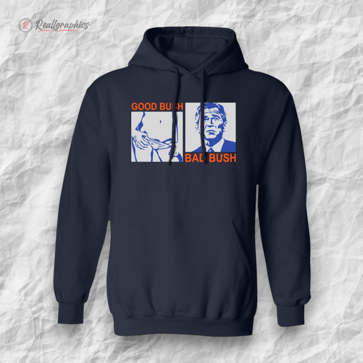 Sharp, unapologetic, and dripping with irony, this hoodie catches the eye with a three-panel layout that’s impossible to ignore. On one side, a cool blue-toned portrait channels a retro pop-art vibe—something that recalls political posters from a bygone era but twisted with modern edge. The bold orange typography, screaming GOOD BUSH and BAD BUSH, locks into stark contrast with the calm portrait, setting a visual tension that feels both nostalgic and provocative. The blocky, all-caps sans-serif font refuses to be subtle, turning the design into a statement piece rather than background noise. This is more than just a shirt; it’s a conversation starter for those who live and breathe political satire, who enjoy dissecting the layers beneath public personas with a sharp sense of humor. It fits effortlessly into the wardrobe of anyone who’s equally comfortable debating policies over coffee or sparking up a laugh at political events. Pair it casually with jeans or layer it under a heavy coat when the conversation heats up. Worn confidently, this piece sends a clear and witty message — it’s for those unafraid to engage with politics through a lens that’s at once playful and biting. The good bush bad bush shirt invites you to embrace the chaos, the contradiction, and the spirited debate that comes with the territory. It’s made for cultural provocateurs and humorists who find freedom in edgy commentary disguised as vibrant pop art.