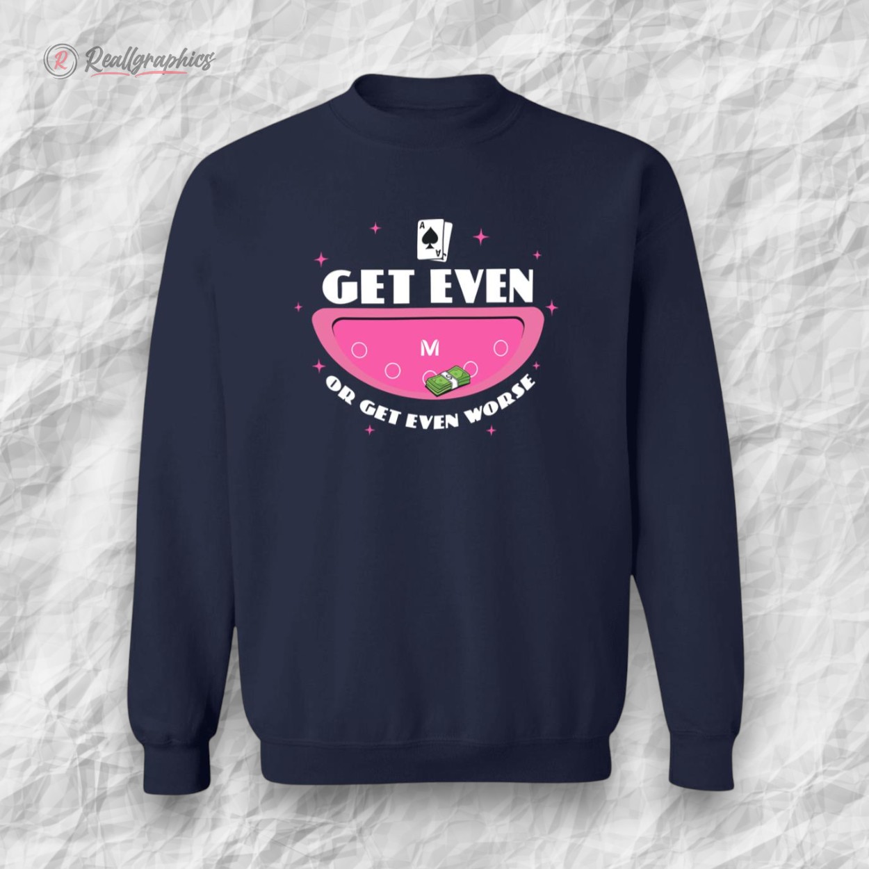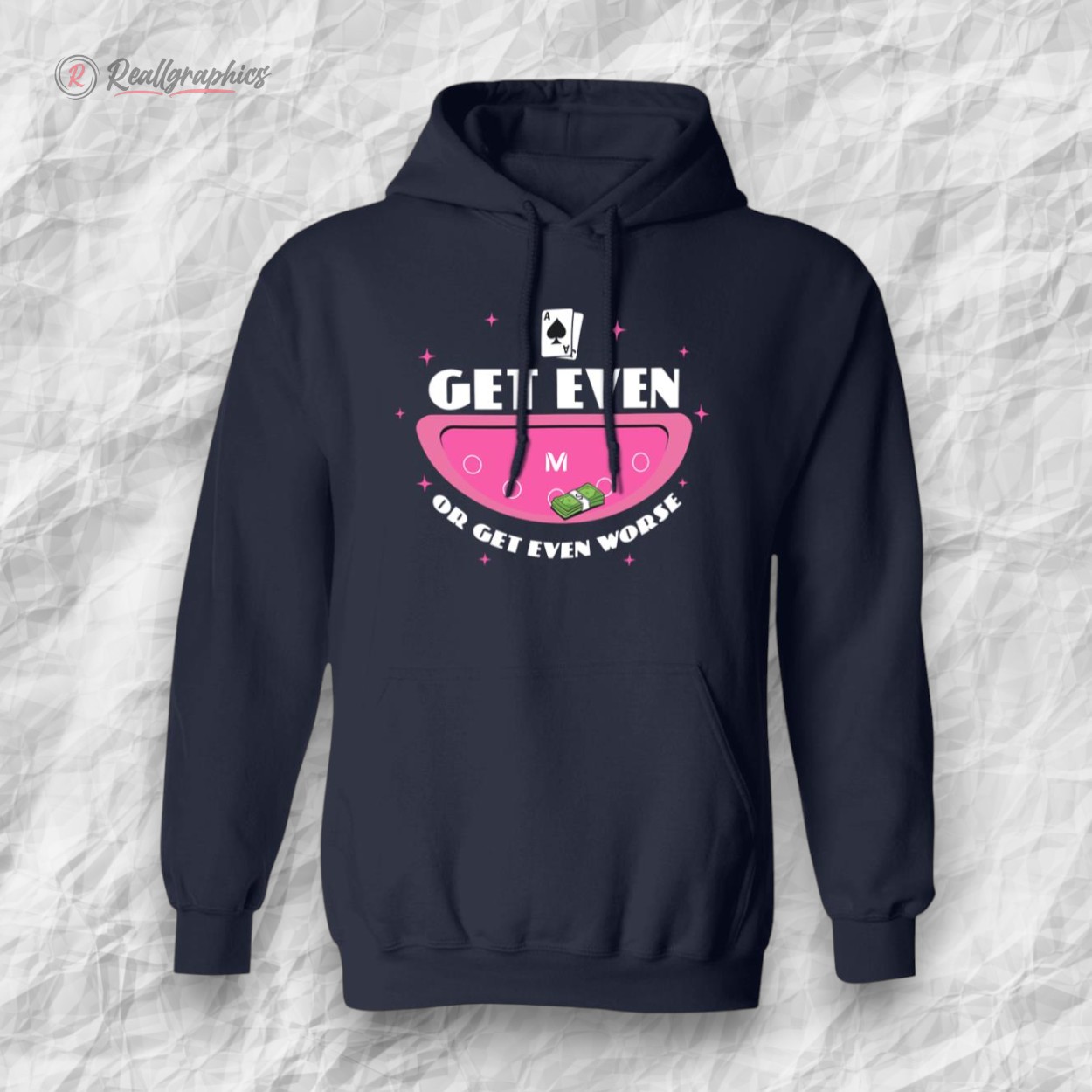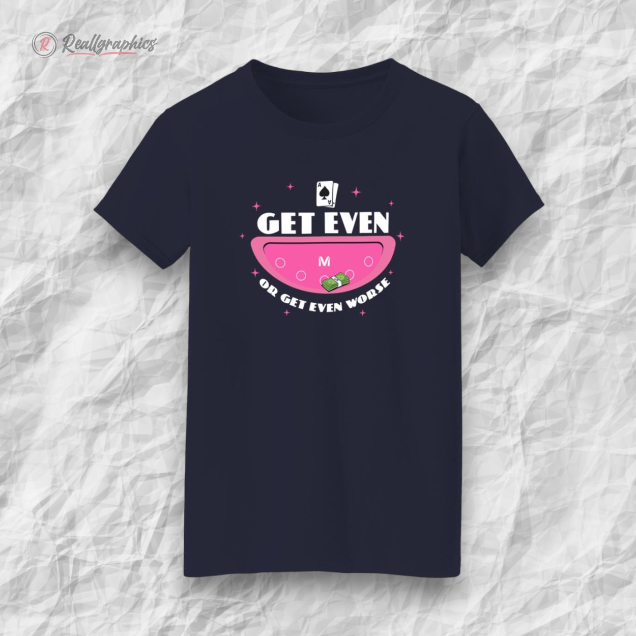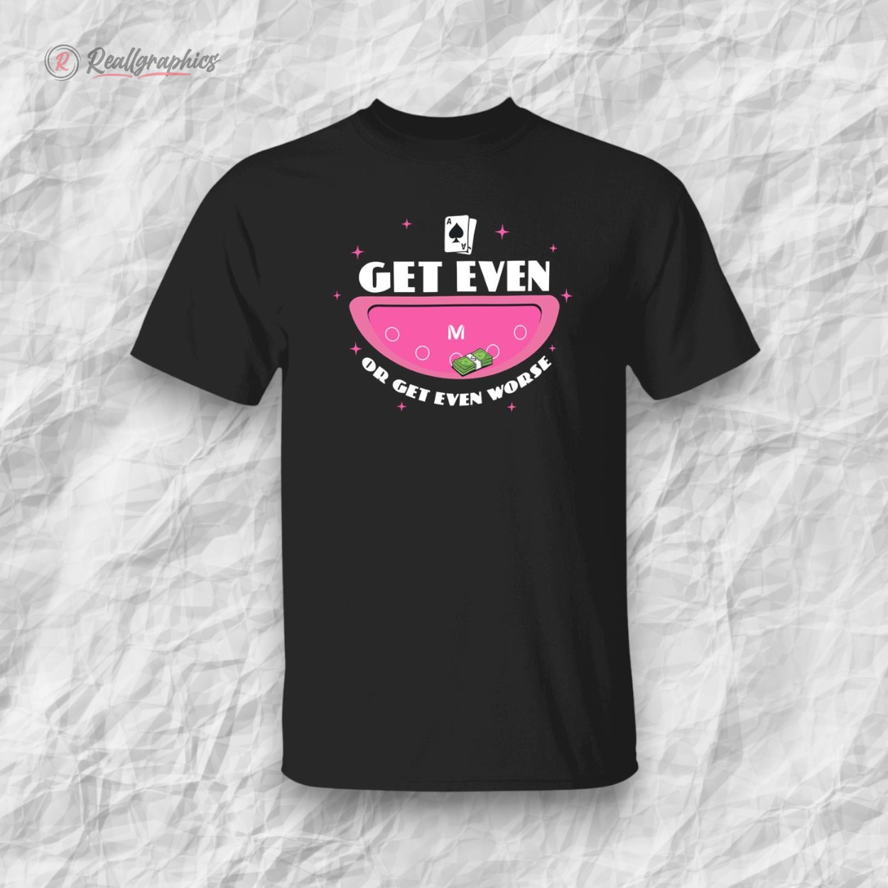 Boldness wears many faces, and sometimes it’s drawn sharp and colorful across fabric. This shirt grabs attention with a slice of bright pink watermelon bouncing alongside scattered playing cards and a neat stack of cash, all framed by blocky, white typography that curves with a cheeky defiance. Little stars sprinkle the background, adding a playful sparkle to the rebellious vibe that’s hard to ignore. It’s not just a shirt; it’s a statement for those who speak through humor and confident swagger. The graphic is cartoonish but charged with attitude, blending streetwear energy with a wink that says you’re not here to play it safe. Young adults who live for edgy jokes and don’t mind stirring the pot will find the design resonating with their inner fire. Whether hanging out casually or just lounging, this is the kind of garment that mirrors a mindset—funny but fearless, bold without apology. This get even shirt captures a mood that’s part mischief, part self-expression. It’s something friends who share ironic laughs or thrive on meme culture would actually wear, turning everyday style into a canvas for personality. The humor isn’t subtle, and neither is the design—it insists on being noticed, much like the people drawn to it.