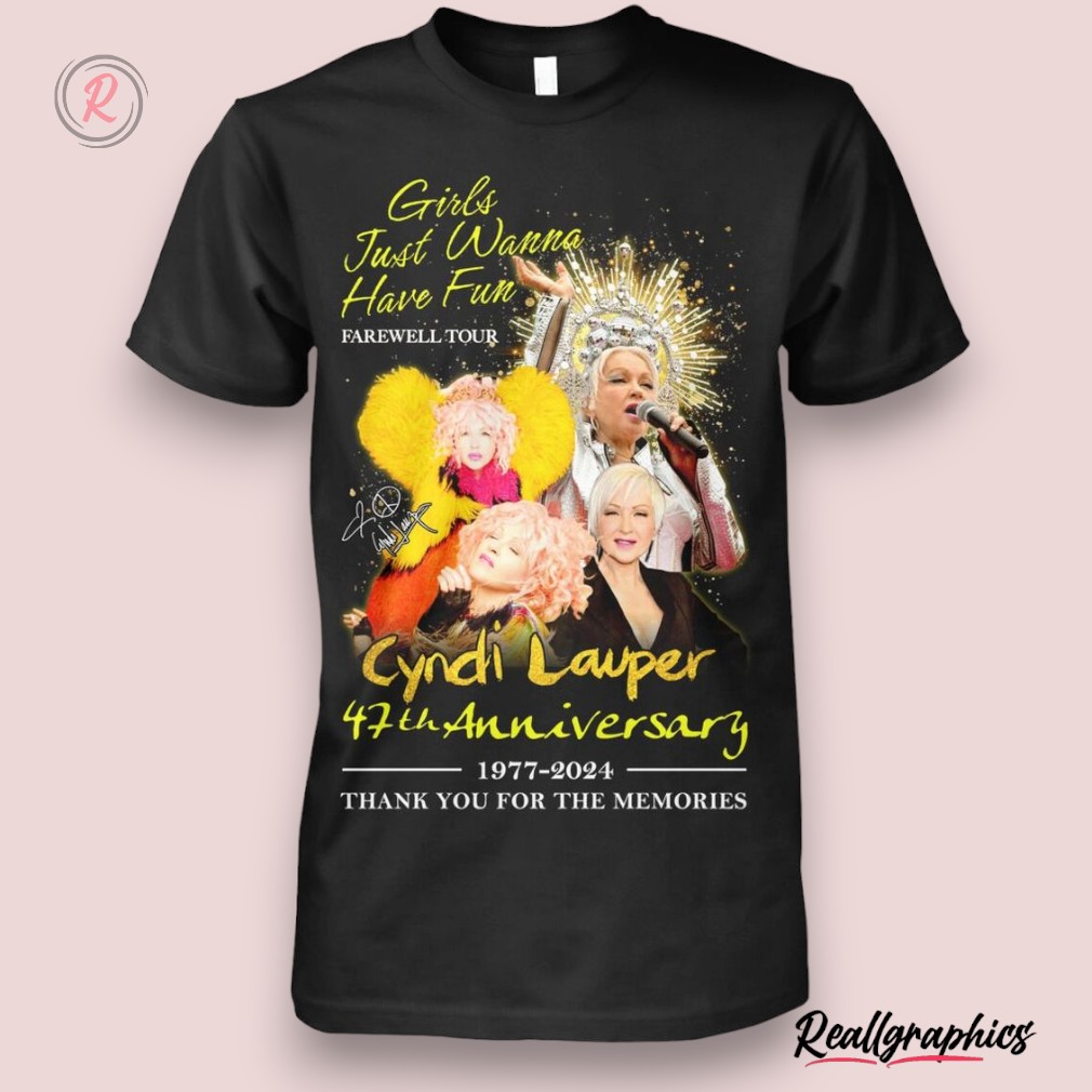 Girls Just Wanna Have Fun Farewell Tour Cyndi Lauper 47th Anniversary 1977 2024 Thank You For The Memories Unisex Shirt details