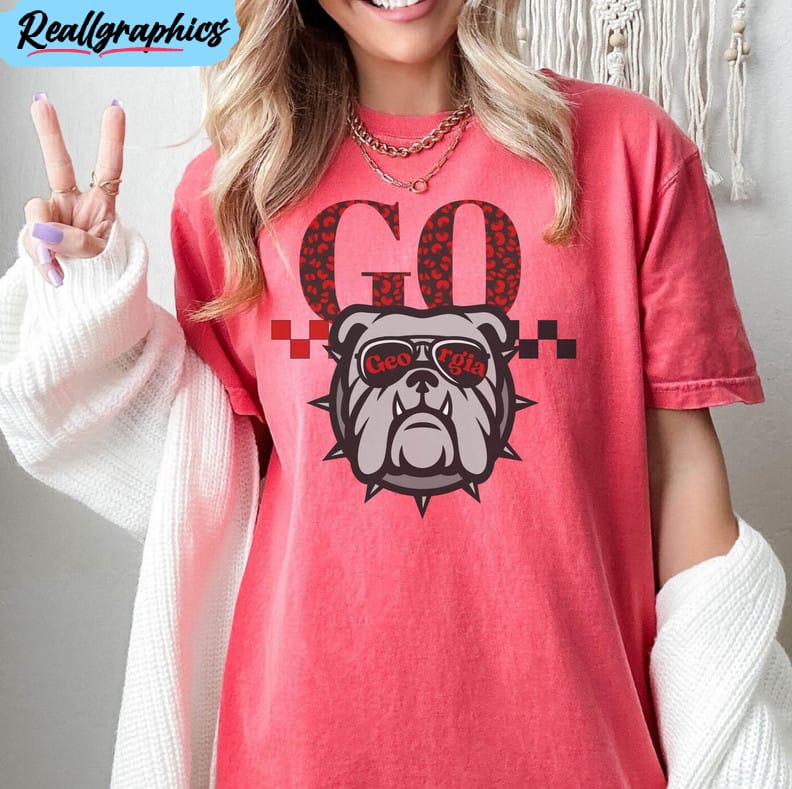 Go Bulldogs Tshirt, Georgia Bulldog Mascot Game Day Short Sleeve Crewneck details