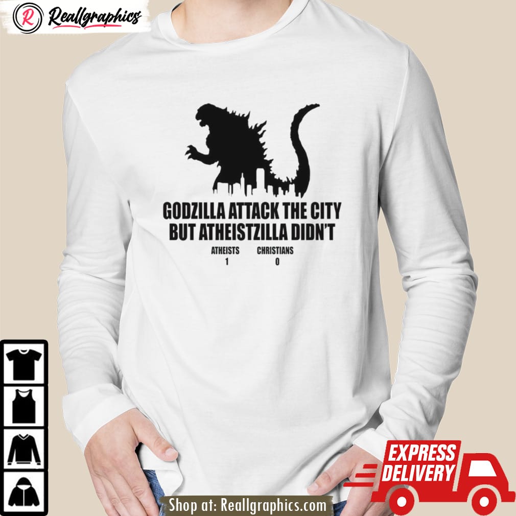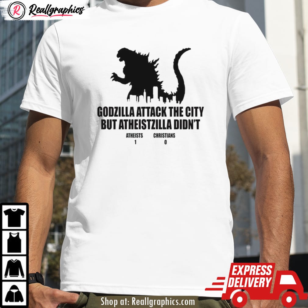 Godzilla Attack The City But Atheistzilla Didnt Atheists 1 Christians 0 Shirt details