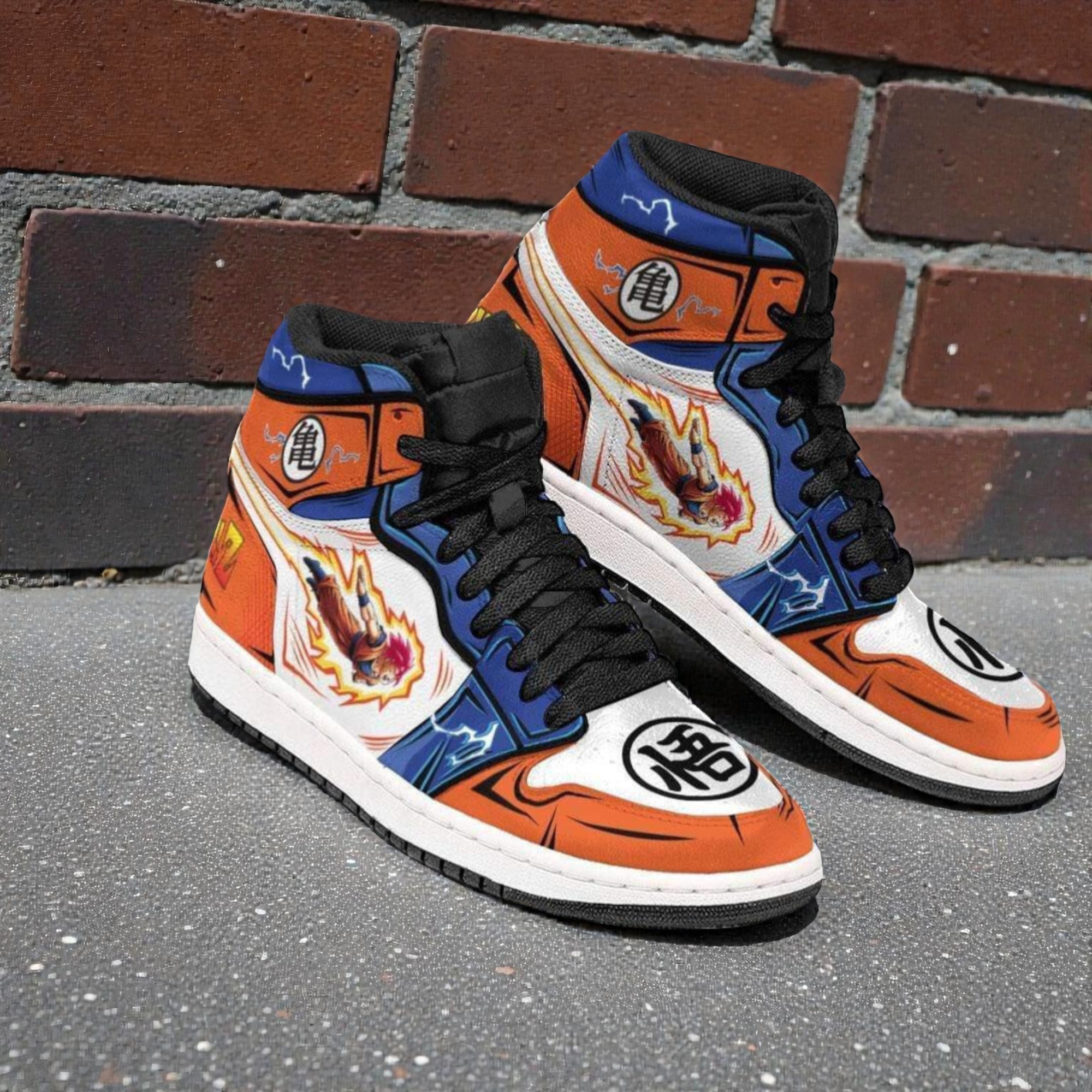 The sharp contrast of vibrant orange and deep blue panels commands attention the moment these sneakers hit the pavement. Around the sides, dynamic Dragon Ball Z artwork leaps into view—the fierce energy of Goku in his Super Saiyan God form captured with bold comic-style linework and the striking red kanji emblem anchoring the design near the heel. Typography in heavy, graphic fonts trails along the edges, underscoring the heroic, fast-paced spirit that fans know so well. Every element of these shoes speaks to the raw intensity and colored flair of the Dragon Ball universe. They carry more than just style; they hold a piece of that fandom’s identity, a way for enthusiasts to silently share their passion in everyday settings. Whether navigating city streets or gathering at a weekend fan event, they balance an expressive energy with wearable practicality. Collectors and devoted followers of the saga will recognize the deeper layers of meaning woven into the composition—from the carefully selected hues to the placement of iconic symbols. It’s not just footwear, but a nod to countless battles, rivalries, and moments of growth embedded in anime culture. These Goku Shoes Dragon Ball Z Shoes Super Saiyan God Anime Boot Sneakers make a subtle statement for those who understand the lore yet want something that fits naturally into daily life outside cosplay.