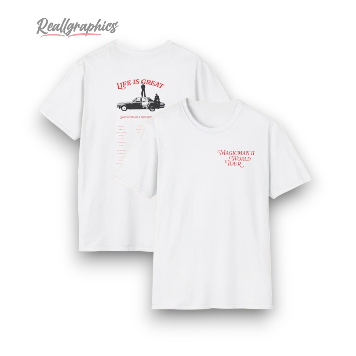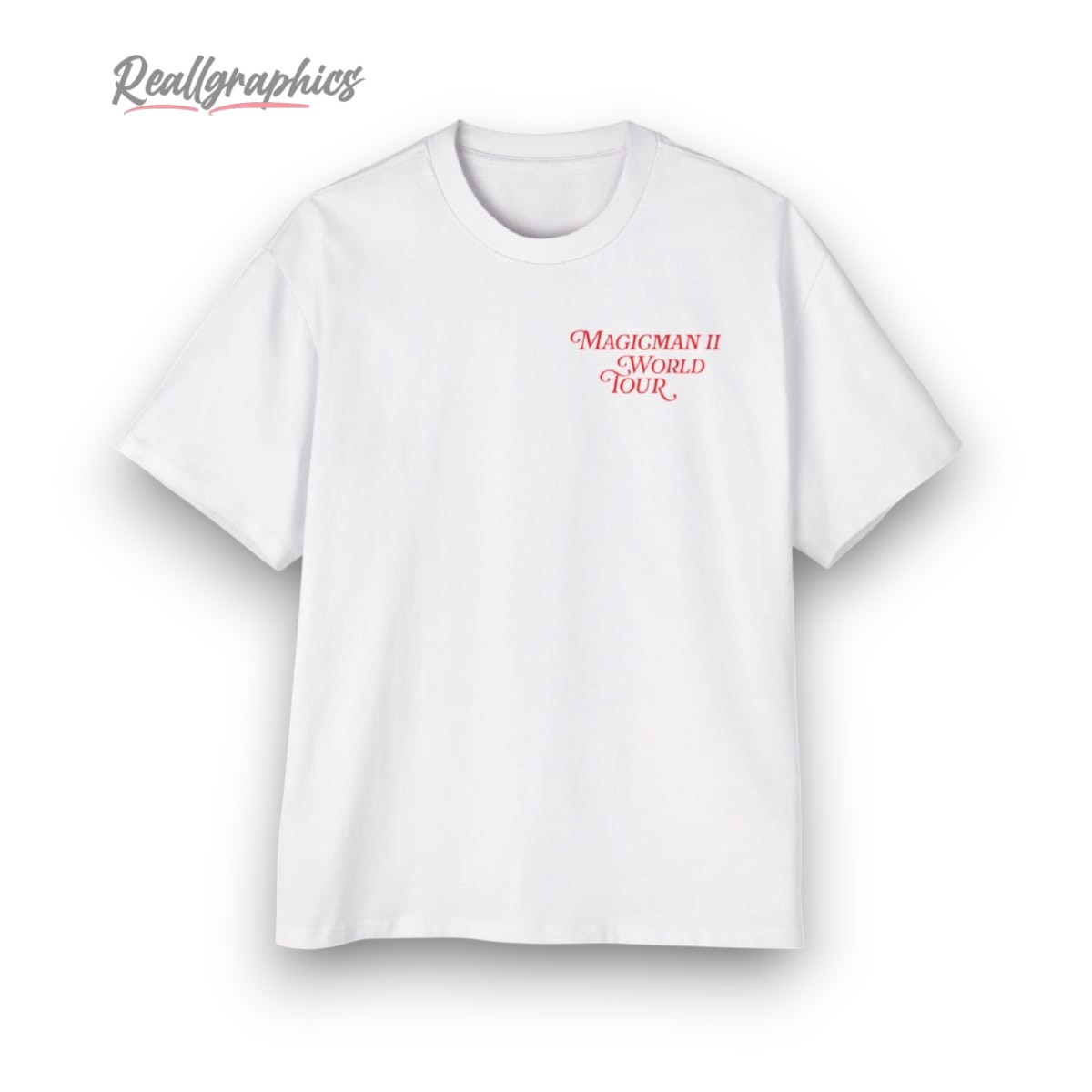 Imagine reliving the electric vibes of a world tour every time you slip on this shirt. The Magicman II design captures the excitement and energy of an unforgettable musical journey. It's a nod to those special nights that left you in awe. Want to keep that magic alive in your wardrobe? This tee is just what you need. Grab yours now and wear the thrill!