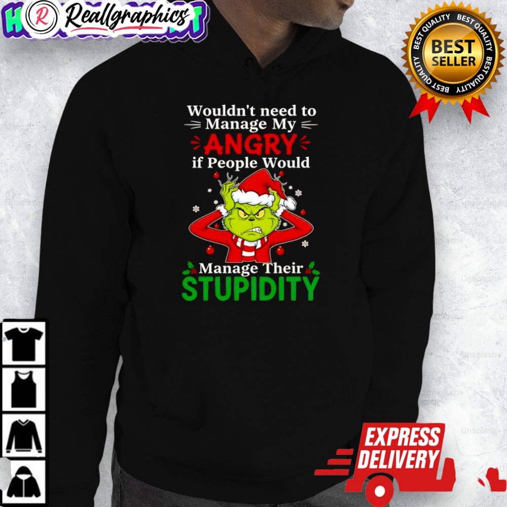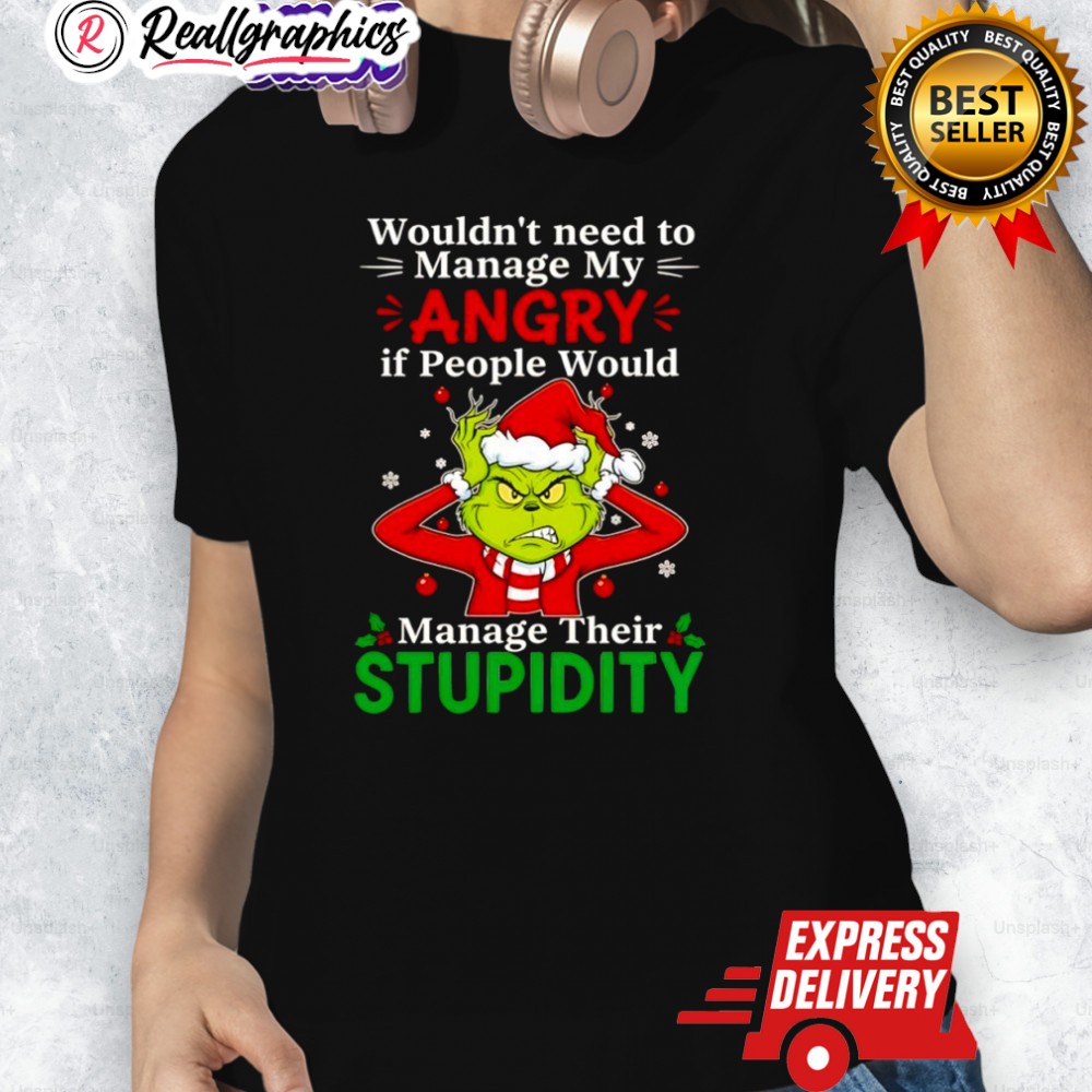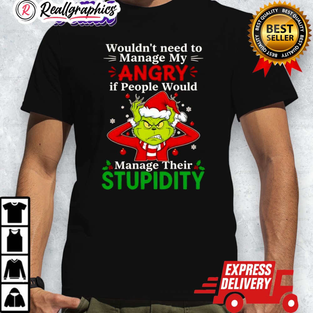 Grinch Christmas Wouldn’t Need To Manage My Angry If People Would Manage Their Stupidity Shirt