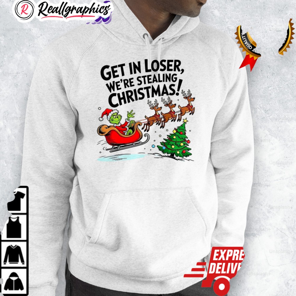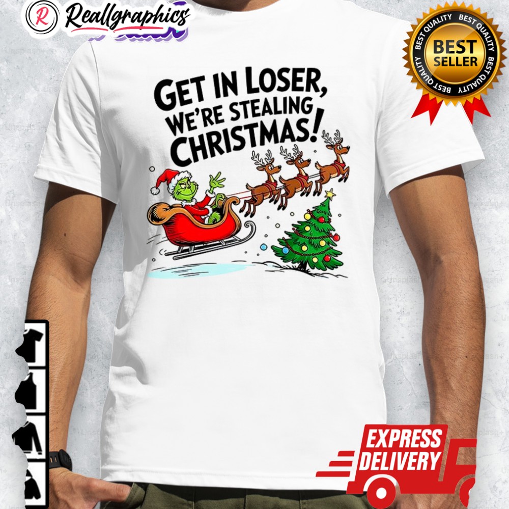 Grinch Santa Get In Loser We’re Stealing Christmas Shirt