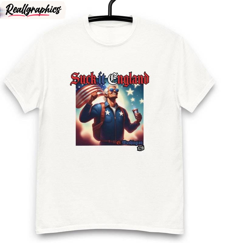 Groovy Suck It England Shirt, 4th Of July Suck It England Short Sleeve Crewneck details