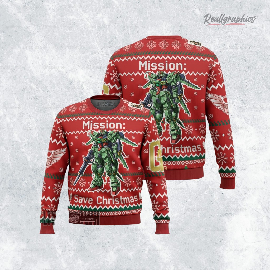 It's Christmas, and an epic Gundam mission awaits! This playful sweater design features the iconic mech ready to Save Christmas, combining festive cheer with anime flair. Perfect for fans who want to add a touch of adventure to holiday traditions. Whether you're sipping cocoa or unwrapping gifts, let Gundam lead the charge. Grab yours now and join the festive fun!