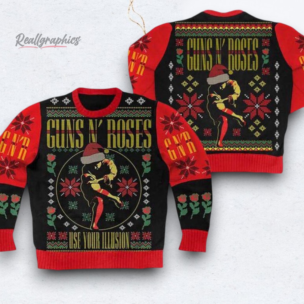 Rock your holiday season with this epic sweater! Featuring iconic imagery from the legendary Use Your Illusion albums, this festive and bold knit is a must-have for any die-hard fan. Get ready to sleigh the holidays in style! πΈπΉπ