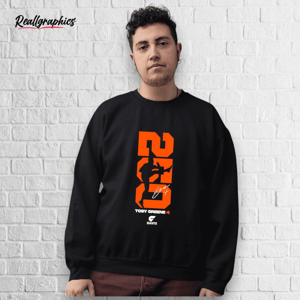 Rep your team pride with this awesome footy tee! Featuring the iconic GWS colors and celebrating one of the Giants' legends. Perfect for game day or everyday wear. Grab yours and show your support! Gws Giants Toby Greene Shirt