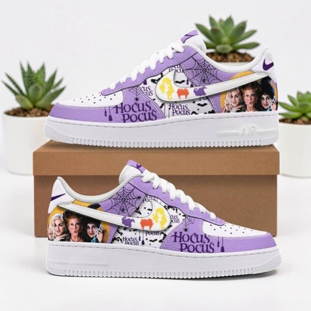 There’s something about slipping on sneakers that don’t just make a statement but tell a story—these Halloween Hocus Pocus sneakers do exactly that. Wrapped in deep purples and accented with delicate spider webs, every glance reveals a lively collage of faces and iconic moments from the cult classic. The bold serif-like text stacked whimsically across the design feels like magic itself, bridging the gap between nostalgia and unmistakable Halloween charm. Not just for show, the graphics balance playfulness with just the right hint of eerie, making the shoes as much about fun as they are about fandom. Whether you’re weaving through a Halloween party or heading to a casual cosplay event, these sneakers carry a vibe that’s festive without screaming for attention. Think effortlessly pairing them with black denim and a cozy oversized sweater, or even layering with a witchy-inspired coat to lean into the spooky mood. They’re perfect for anyone whose love for Hocus Pocus runs as deep as their passion for unique shoes—whether that’s a sneaker collector craving limited editions or a Halloween enthusiast wanting to wear their fandom boldly. These kicks aren’t just footwear; they’re a playful badge worn by those who admire the magic of the season, who revel in a bit of darkness and whimsy mixing effortlessly at their feet. The Hocus Pocus sneakers bring the spirit of the season to life, quietly bold and unmistakably top-shelf in personality.