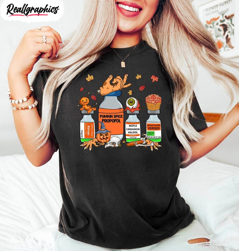 Halloween Nurse Pills Shirt, Halloween Er Nurse Crewneck Unisex Hoodie details
