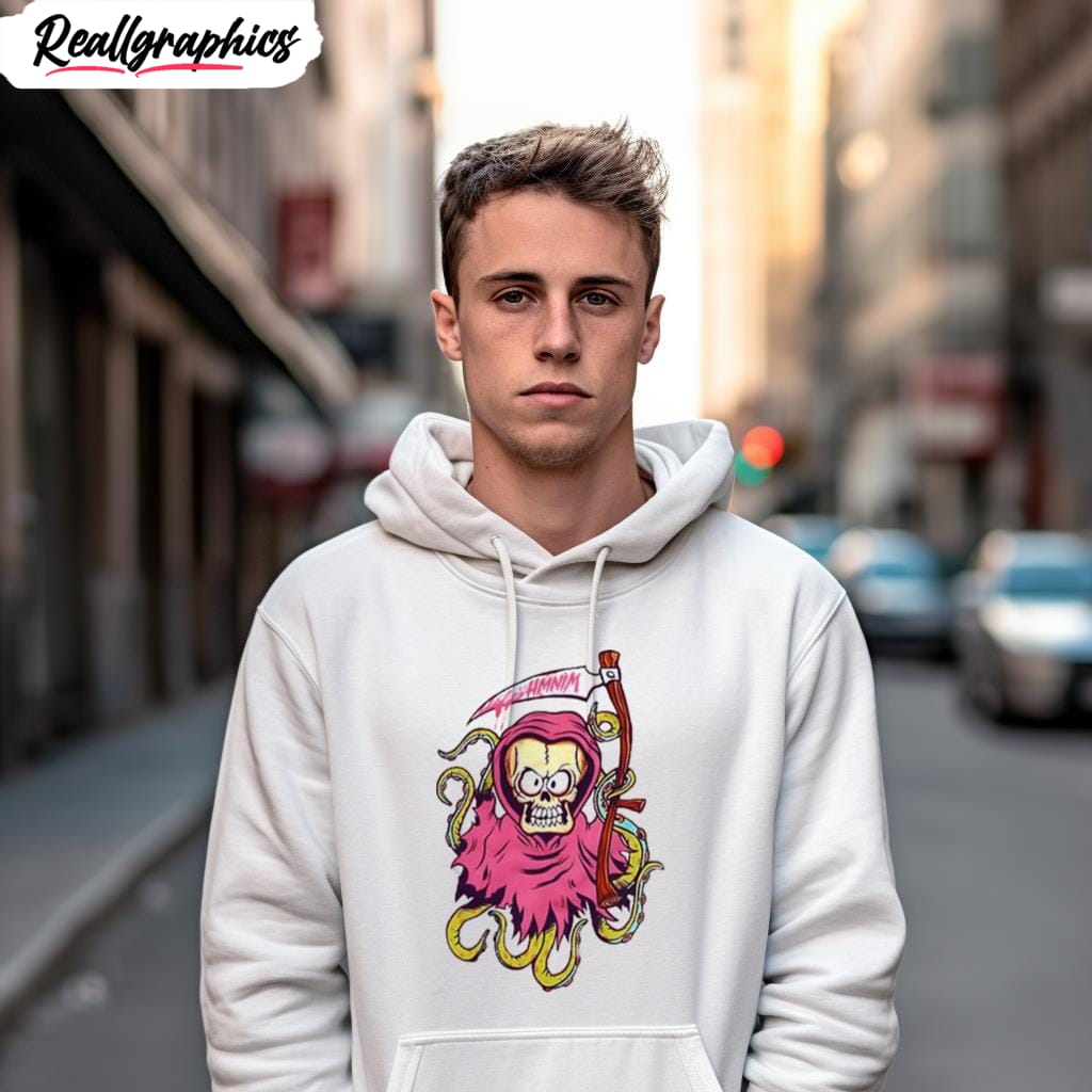 The Hi My Name Is Mark Reaper T Shirt is a bold and stylish statement piece of clothing. This black t-shirt features a red skull graphic with a banner that reads “Hello My Name Is Mark Reaper”, making a unique statement for any individual looking to make a statement. This t-shirt is perfect for any occasion, from a night out with friends to a casual day in. It has a classic fit and is comfortable, making it great for layering with other t-shirts and jackets. The quality of the fabric is strong and will last through many different washings. With its unique and edgy design, the Hi My Name Is Mark Reaper T Shirt is perfect for expressing who you are and making sure you stand out in a crowd.