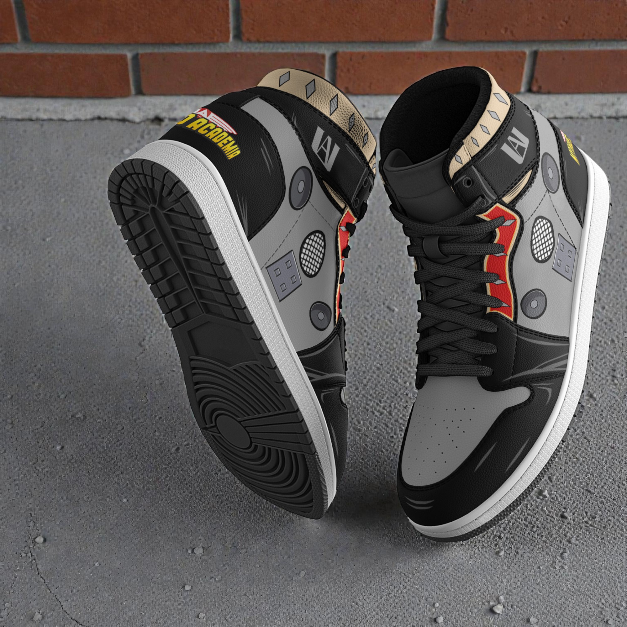 There’s something electric about owning a piece of a world you admire, like these cosplay sneakers anime fans will instantly recognize. They don’t just sit quietly on your feet—they shout with a bold, tech-noir energy that’s impossible to ignore. The design fuses sci-fi grit with anime armor aesthetics, hitting a perfect balance between futuristic style and street-ready toughness. At first glance, the intricate robotic panels catch your eye, interwoven with subtle circuitry motifs that hint at a world powered by high-tech battles and heroic ambition. The colors play a cool game too—black and gray form a sleek base, broken up by hints of beige and red that add depth without overwhelming. And those bold logo marks? They don’t just brand the shoe; they amplify the whole vibe, giving it that distinctive punch that anime enthusiasts live for. These sneakers aren’t just a cosplay prop. Pair them with a graphic tee and military-inspired cargo pants for an urban edge, or let them shine in a full Hizashi Yamada cosplay ensemble, channeling Present Mic’s energy straight from My Hero Academia into every step. They’re fantastic for conventions where you want to stand out without sacrificing comfort, or just rocking something different on a daily basis that echoes your passion. Who walks in these? The confident cosplayer who takes character authenticity seriously, yes, but also the anime lover who wants their fandom to be part of their everyday style. And sneaker collectors who appreciate bold, story-rich design will find these a unique addition to the lineup. They make a thoughtful gift too, for anyone eager to blend their love of anime with cutting-edge streetwear—something that feels alive, not just staged. These sneakers are more than shoes; they’re a wearable tribute, a way to carry that heroic spirit wherever you go.