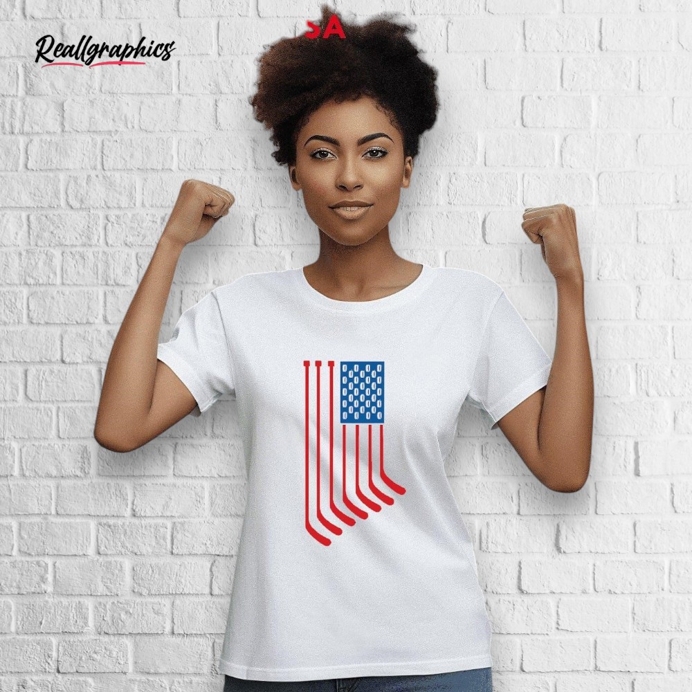 Show your love for hockey and America with this awesome tee! Perfect for wearing to games, practices, or just showing off your patriotic spirit. Get yours today!