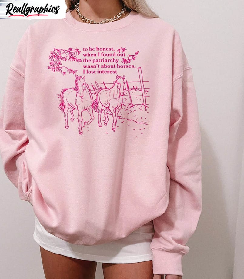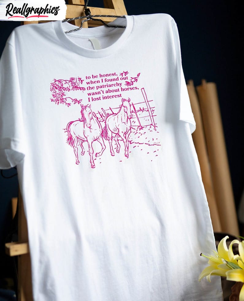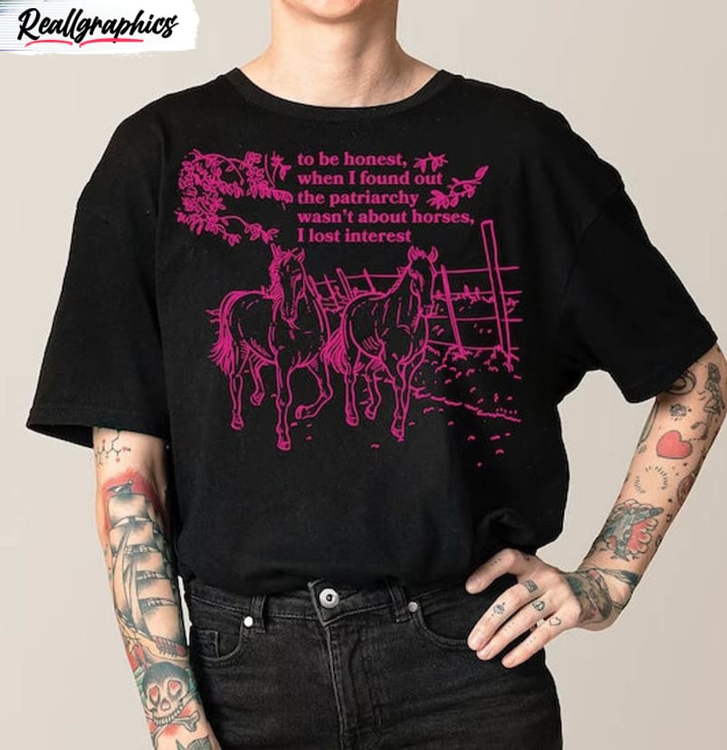 The Horses Are Not The Patriarchy Shirt I Lost Interest Unisex Tshirt Crewneck is a fashionable and statement-making piece of clothing for both men and women. With its comfortable crewneck design, this shirt offers a relaxed fit and can be worn casually or dressed up for a more stylish look. The striking graphic on the front, which reads Horses Are Not The Patriarchy, conveys a powerful message and promotes equality. Made from high-quality materials, this t-shirt is durable and designed to last. It is a must-have addition to any wardrobe for those who want to make a bold statement and support gender equality.