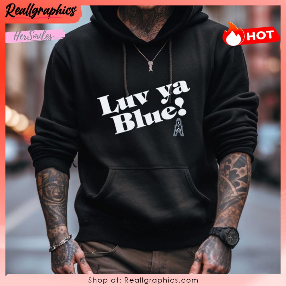 The Houston Oilers Luv Ya Blue Shirt is a nostalgic piece of sports memorabilia that commemorates the heyday of the Houston Oilers football team. The blue shirt, adorned with the team’s logo and the iconic Luv Ya Blue slogan, symbolizes the team’s success and popularity during the late 1970s and early 1980s. This era saw the Oilers achieve great success, including multiple playoff appearances and memorable moments. Wearing the Luv Ya Blue Shirt allows fans to proudly display their support for the team and to reminisce about the thrilling games and unforgettable players that once wore the Houston Oilers’ uniform.