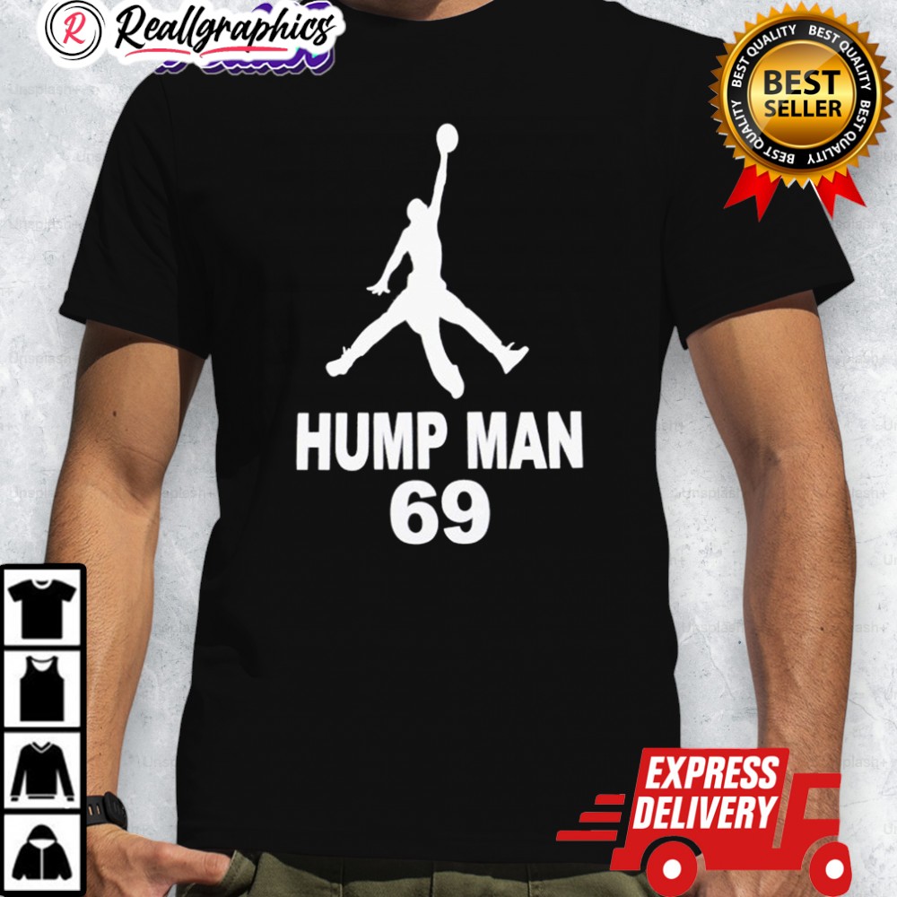 Rep your love for the game with this unique basketball-themed tee! Perfect for hitting the court or just chilling with friends. Get yours now and show off your baller style. Limited quantities available! Hump Man 69 Basketball Shirt