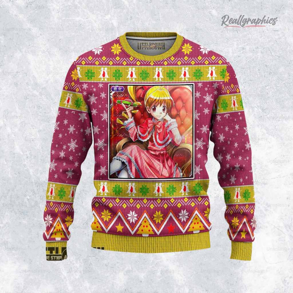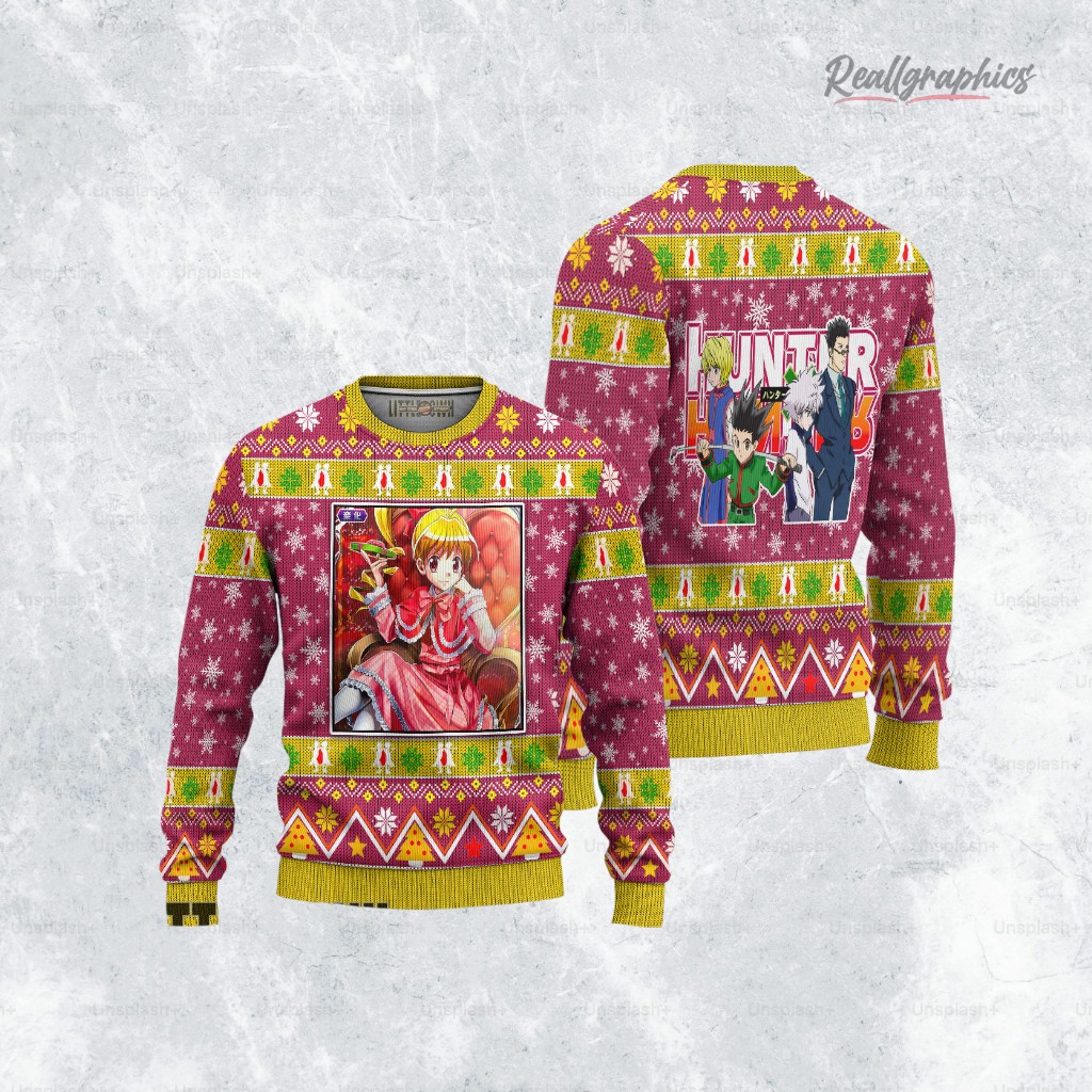 Cozy up this winter with a sweet treat! This anime-inspired sweatshirt features a certain Nen user's love for cookies in a festive, albeit unusual, design. Perfect for staying warm while binging your favorite episodes! Get yours now and join the hunt for the perfect holiday gift. Hunter x Hunter Ugly Sweater Biscuit Sweatshirt