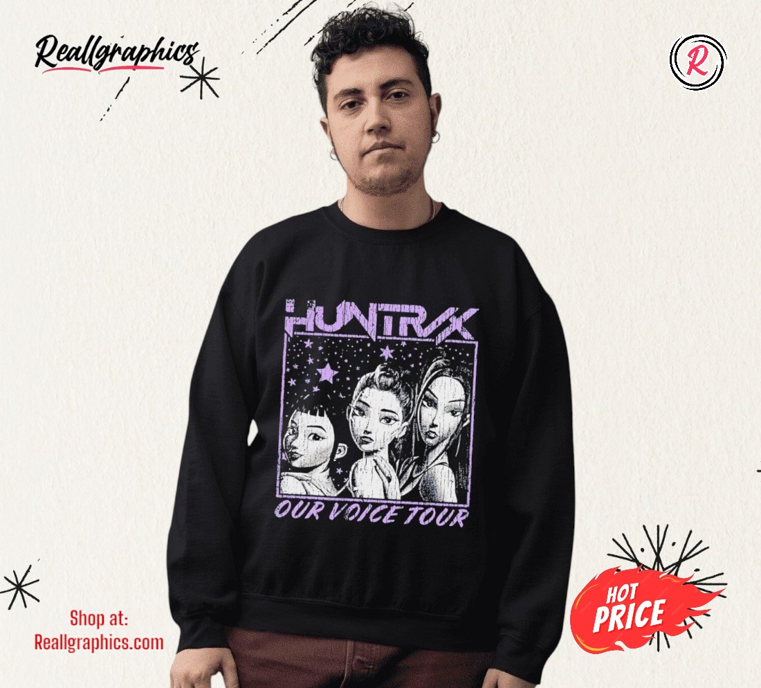 Snag this limited-edition tee and wear the music! Celebrate the tour with soft, comfortable fabric and a design that screams rock and roll. A perfect memento for any die-hard fan. Get yours before they're gone! Huntrix Our Voice Tour Shirt