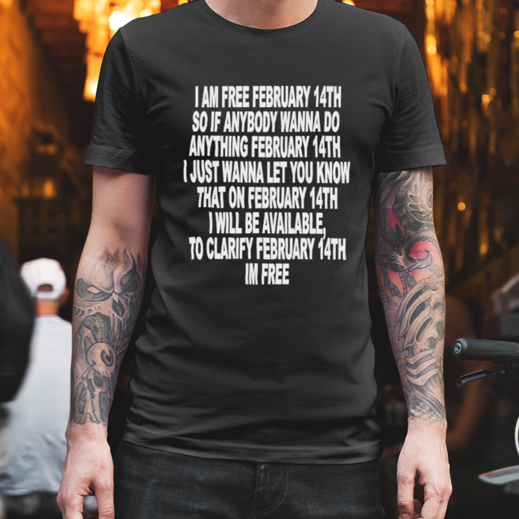 I Am Free February 14th So If Anybody Wanna Do Anything February 14th I Just Wanna Let You Know Shirt details