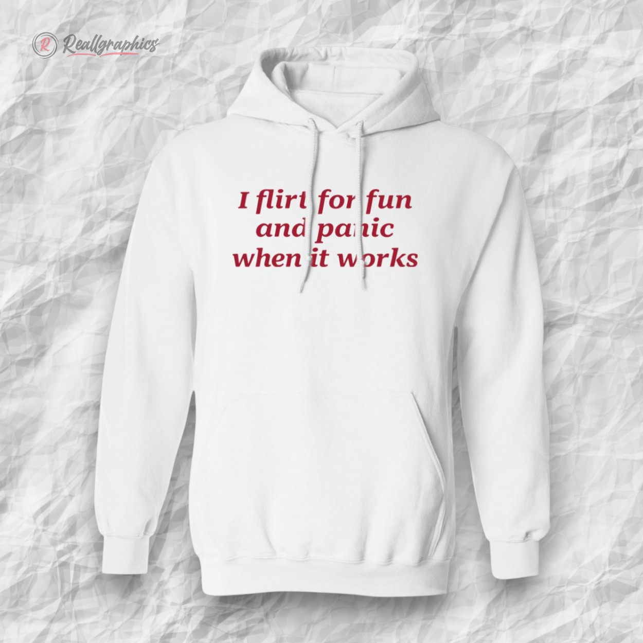 There’s something quietly magnetic about the sharp contrast of this hoodie—the way the bold red serif lettering pops against the crisp white fabric grabs your attention immediately. It’s not just a hoodie; it’s a snapshot of a mindset, boldly laid out in a stacked, multi-line quote that reads like an inside joke shared among friends. The design is unapologetically cheeky—an ironic nod to that moment when confidence turns into charming awkwardness. This isn’t for someone who blends into the background. It’s for the person who enjoys casual streetwear with a twist—someone who wears their humor on their sleeve, literally. Pair it with your favorite faded jeans and some classic sneakers for an effortlessly cool vibe. Throw on a beanie or a slouchy cap, and you’ve got a look that feels equal parts relaxed and playful. Young adults who dive into social scenes but sometimes find themselves pleasantly surprised by their own success in flirting will get this instantly. It’s the kind of shirt that sparks conversation, perfect for casual hangouts, coffee runs, or just a laid-back day mixed with a bit of self-aware humor. If you know someone who’s a little bit reserved but has a wicked sense of humor and a knack for turning moments of panic into memorable stories, this makes a great gift. The I flirt for fun and panic when it works shirt says more than words—it’s an expressive little rebellion wrapped in comfort.