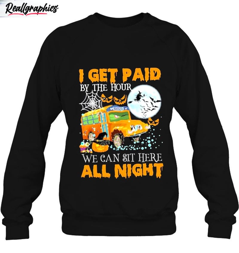 The I Get Paid By The Hour We Can Sit Here All Night Halloween Shirt is the perfect attire for Halloween enthusiasts who enjoy the spooky atmosphere all night long. This shirt features a unique design that includes spooky graphics and the phrase I Get Paid By The Hour We Can Sit Here All Night, which adds a sense of humor to the Halloween spirit. The shirt is made with comfortable fabric and is available in various sizes, allowing everyone to embrace the Halloween season with style and comfort. It's an ideal choice for Halloween parties or casual outings during the spooky season.