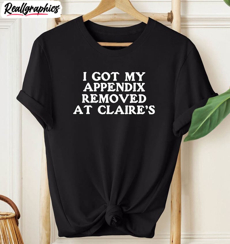 I Got My Appendix Removed At Claires Shirt, Trendy Meme Short Sleeve Tee Tops