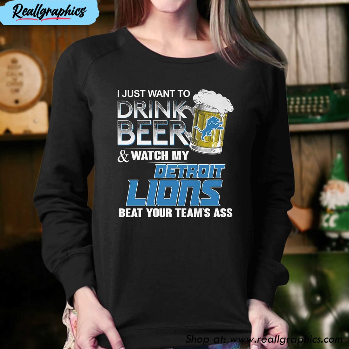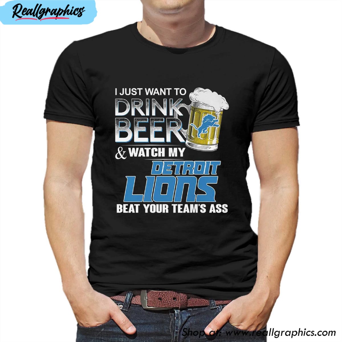 I Just Want To Drink Beer And Watch My Detroit Lions Beat Your Teams Ass Unisex T-shirt, Hoodie, Sweatshirt details