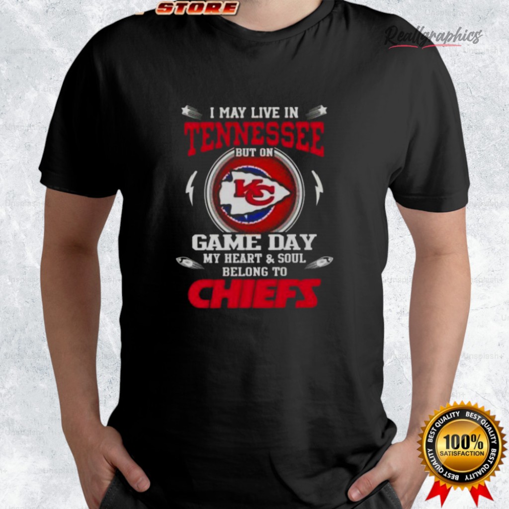 I May Live In Tennessee But On Game Day My Heart And Soul Belongs To Kansas City Chiefs Shirt