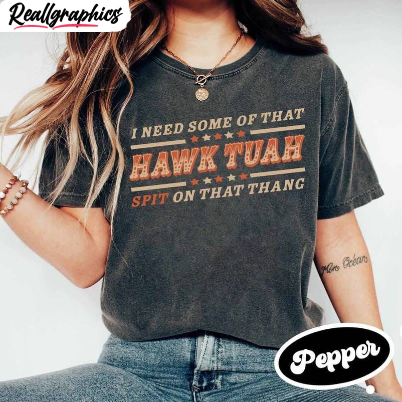 Are you looking for unique and eye-catching apparel to add to your collection? Look no further than our Hawk Tuah-inspired sweatshirts, T-shirts, and hoodies. With bold designs and high-quality materials, these pieces are sure to make a statement wherever you go. Stand out from the crowd and show off your style with our exclusive collection. Grab yours today and elevate your wardrobe to the next level.