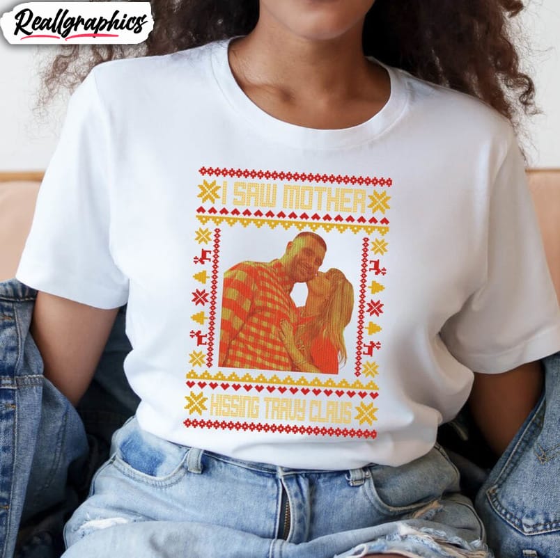 Get into the festive spirit with this unique and humorous I Saw Mother Kissing Travis Kelce shirt. Perfect for Christmas, this unisex t-shirt or hoodie features a playful design that is sure to bring a smile to everyone’s face. The shirt showcases a cute illustration of a mother planting a kiss on the cheek of football star Travis Kelce, adding a touch of fun to your holiday wardrobe. Made with high-quality material, the shirt offers a comfortable fit for both men and women. Whether you’re a fan of Travis Kelce or simply want to spread some holiday cheer, this shirt is a great choice.