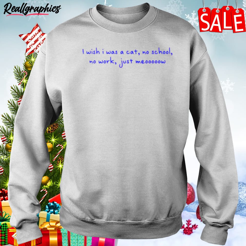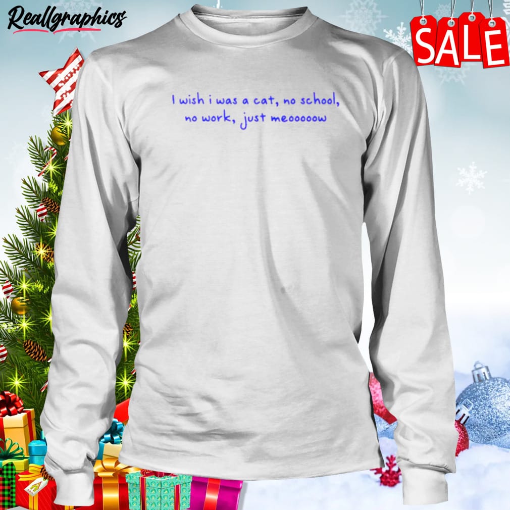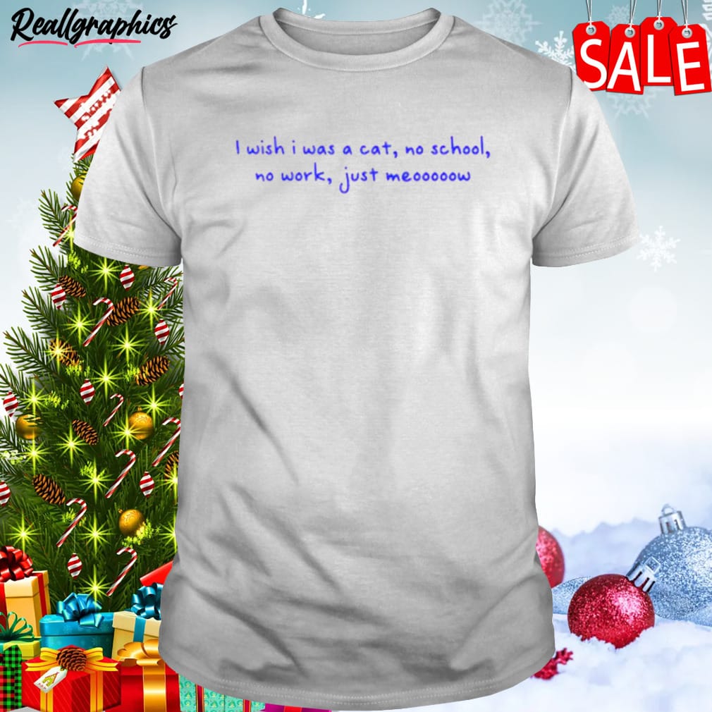 I Wish I Was A Cat No School No Work Just Meooooow Shirt details