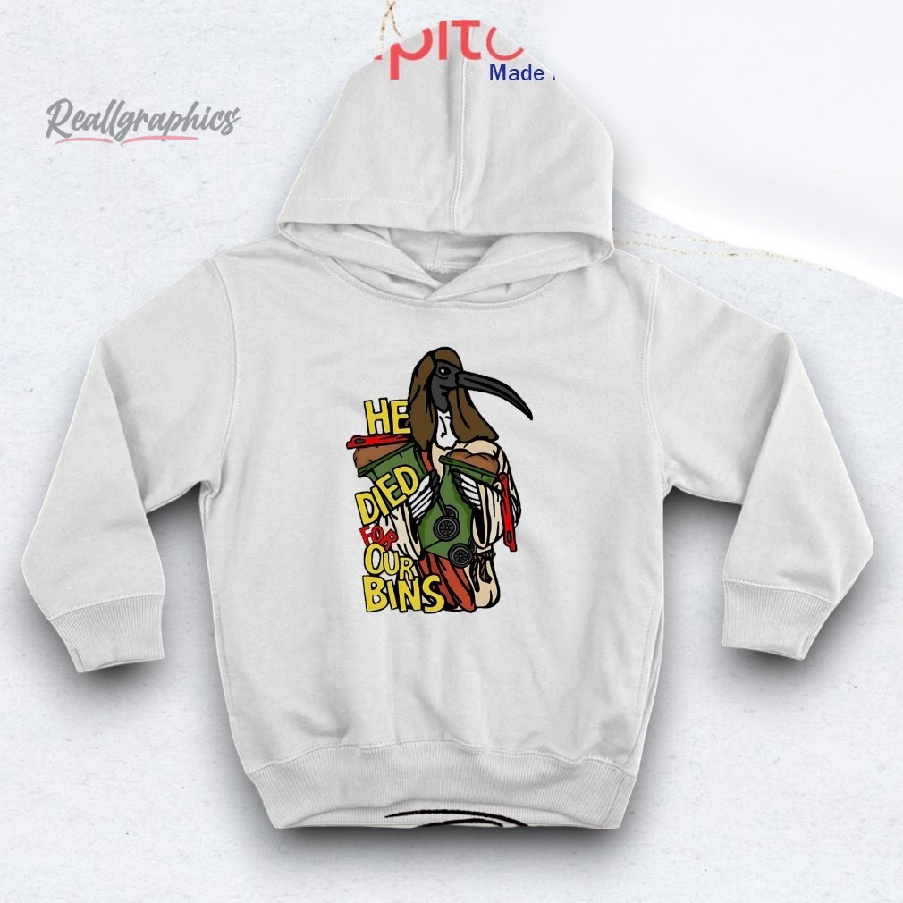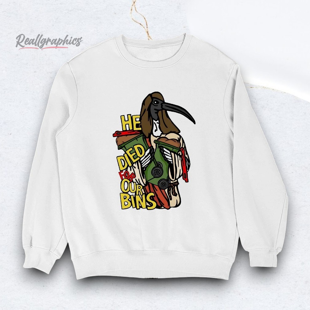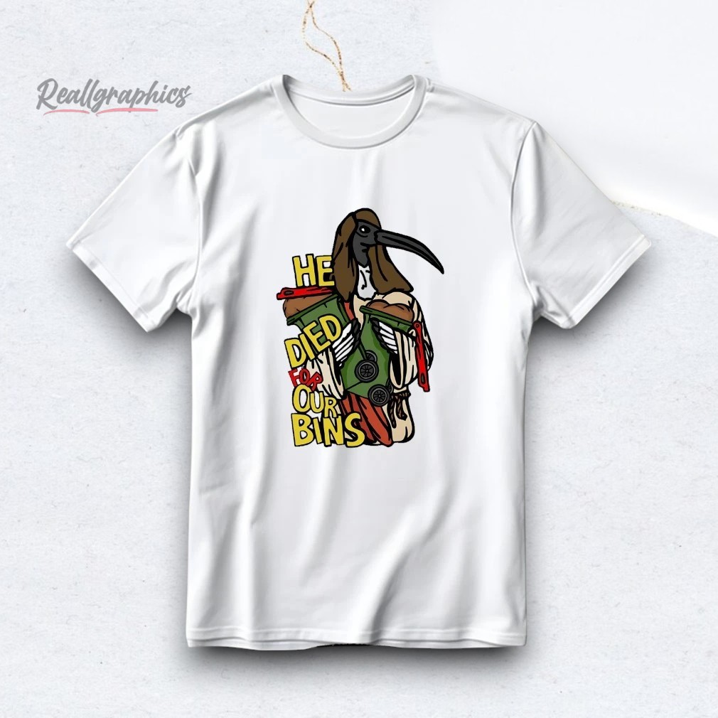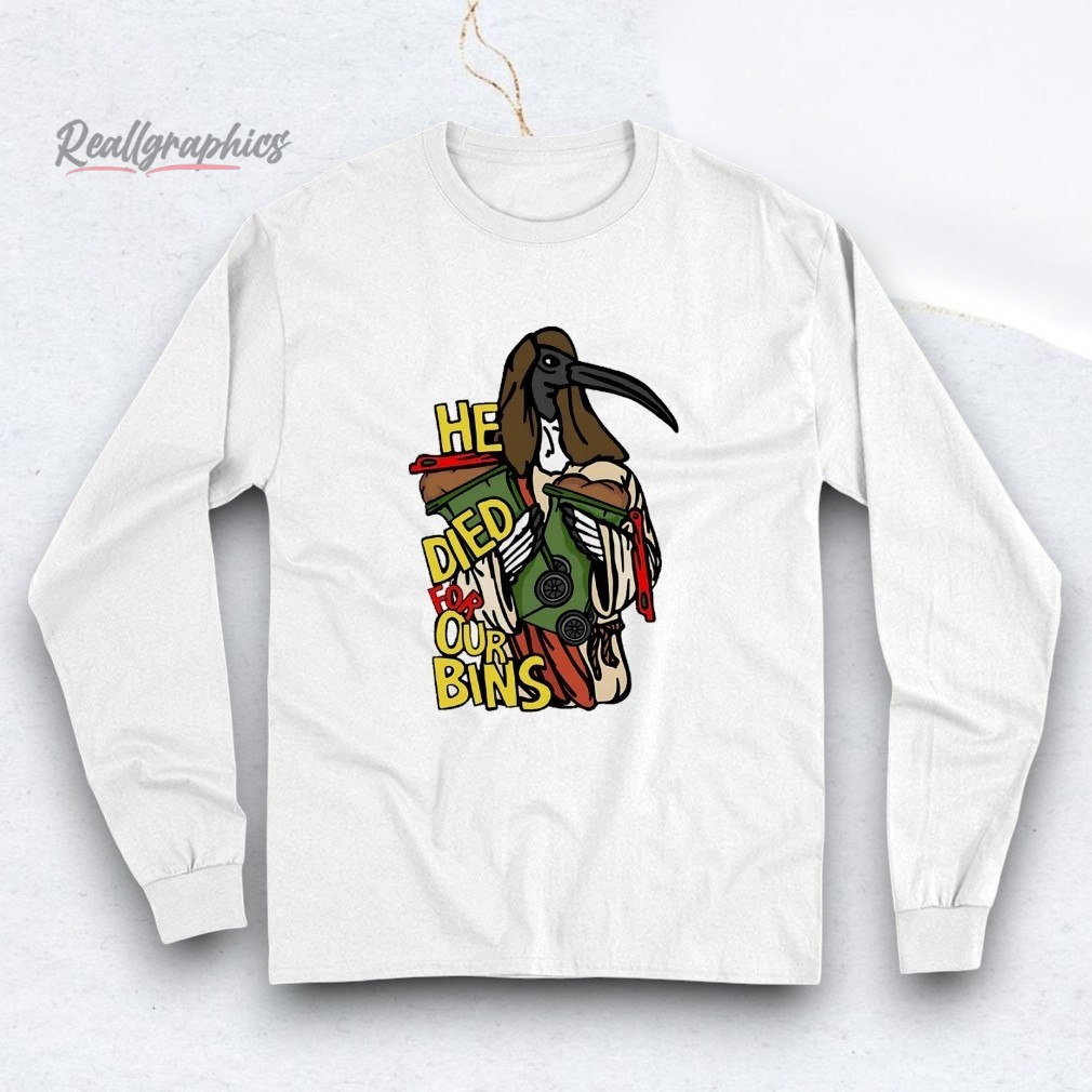 Introducing a piece of apparel that melds humor with everyday life’s quirks! Our latest shirt design is perfect for those who appreciate a good chuckle wrapped in quality fabric. Featuring a playful nod to the unsung heroes of waste management, this shirt captures the spirit of whimsical irony. Whether you're out for a casual stroll or looking to spark a conversation, this delightful garment offers both comfort and a story, making it a standout addition to your wardrobe. Embrace the unexpected and let this shirt become your new favorite go-to piece for any occasion!Ibis He Died For Our Bins Shirt