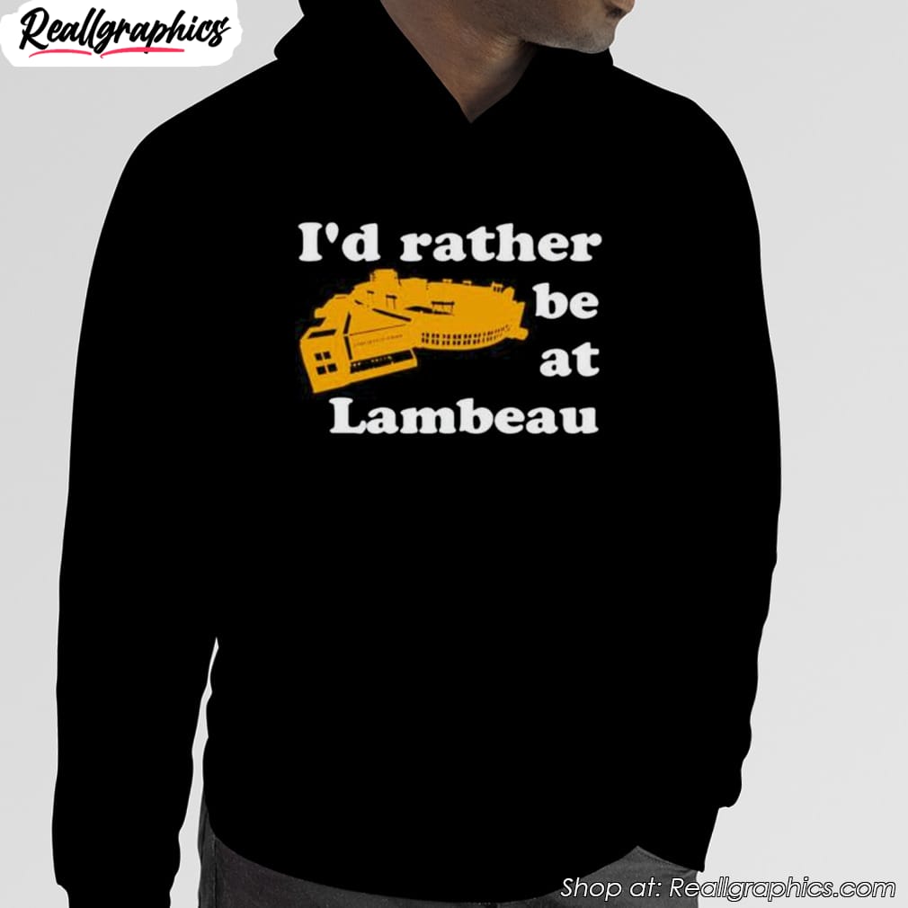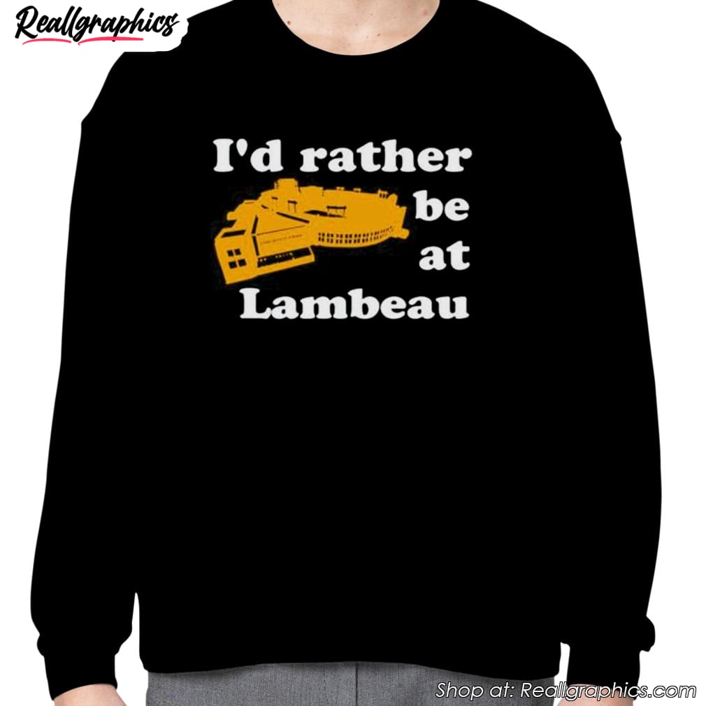 The I’d Rather Be At Lambeau Tee Shirt is a perfect piece of clothing for any die-hard Green Bay Packers fan. This shirt allows fans to proudly showcase their love for the team by showcasing their preferred destination. The design of the shirt features a unique and eye-catching graphic, which instantly grabs attention. Made with high-quality materials, this tee ensures optimal comfort and durability. Whether you are cheering from the stadium or watching the game from the comfort of your own home, this Lambeau Tee Shirt is the perfect way to show your devotion to the Packers.