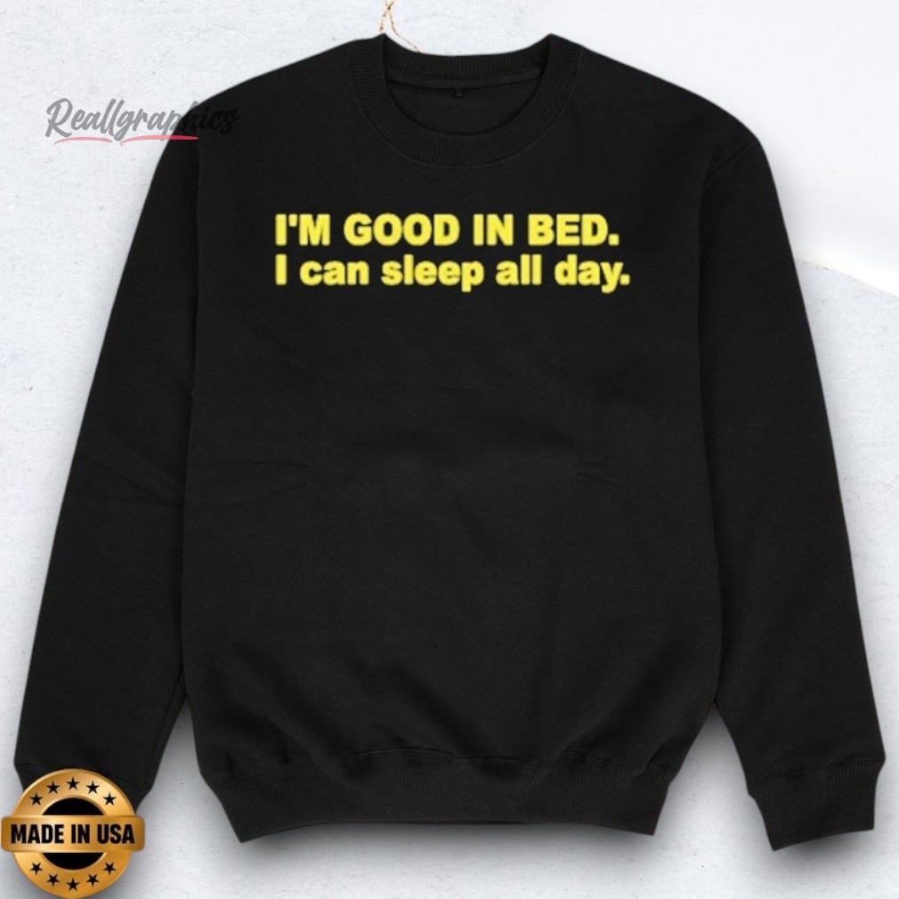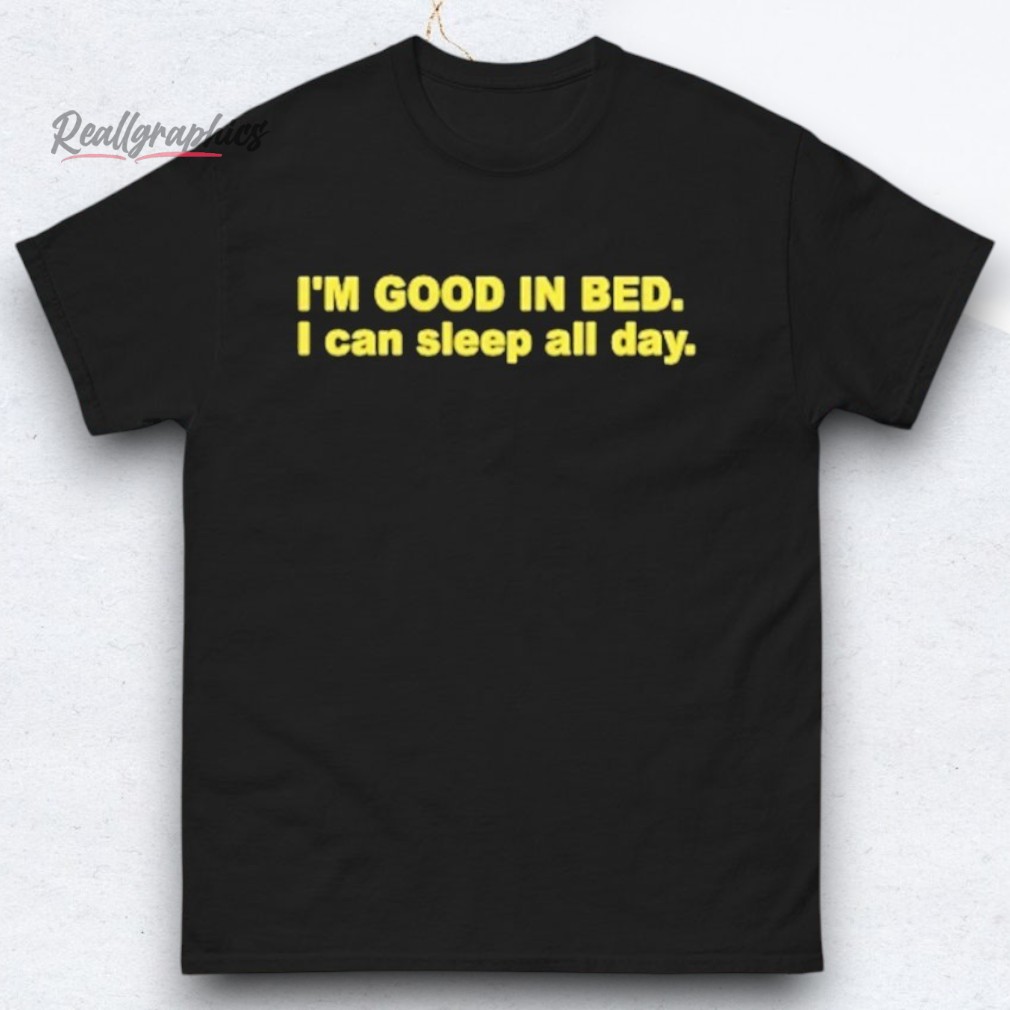 Calling all nap enthusiasts! Snuggle up in style with our super comfy tees. Perfect for lazy Sundays, movie marathons, or just embracing your inner sloth. Get yours today and let the world know your superpower! 😴 I'm Good In Bed I Can Sleep All Day Shirts