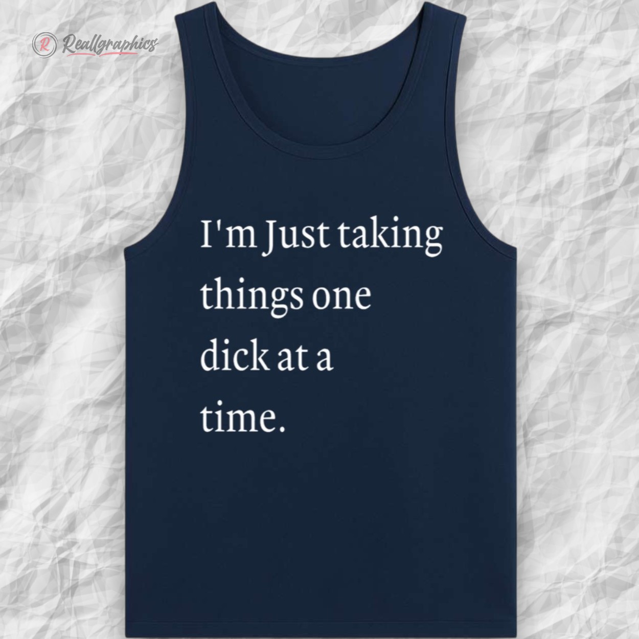 This shirt offers a hilarious, R-rated twist on the classic inspirational quote "one day at a time." Featuring the clean, serif typography phrase "I'm Just taking things one dick at a time," it transforms a standard wellness mantra into a brutally honest update on your dating life.