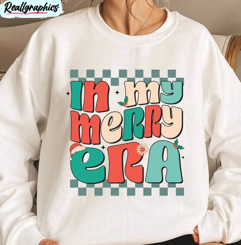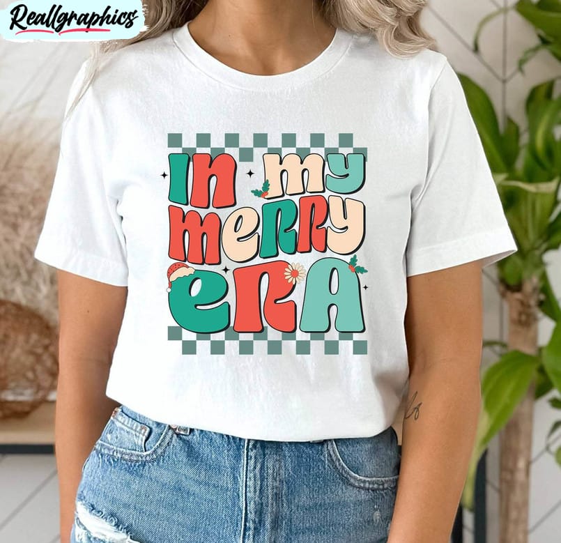In My Merry Era Retro Christmas Shirt, Funny Merry And Bright Crewneck Unisex T Shirt details
