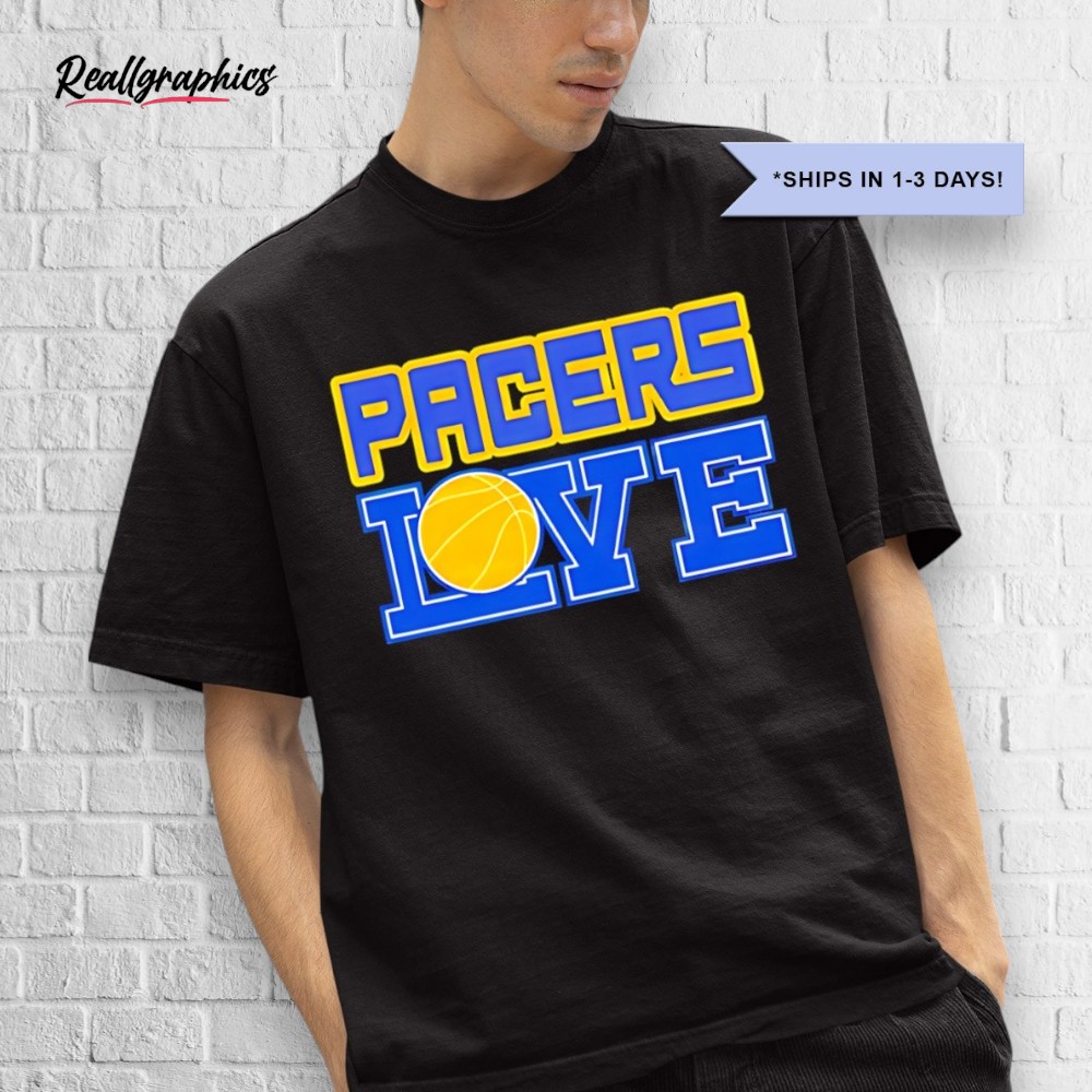 Rep your team with pride! This comfy tee is perfect for showing your Pacers spirit, whether you're courtside or watching from home. Grab yours now and let everyone know where your loyalty lies! Get ready to cheer on the blue and gold! Indiana Pacers Love Shirt
