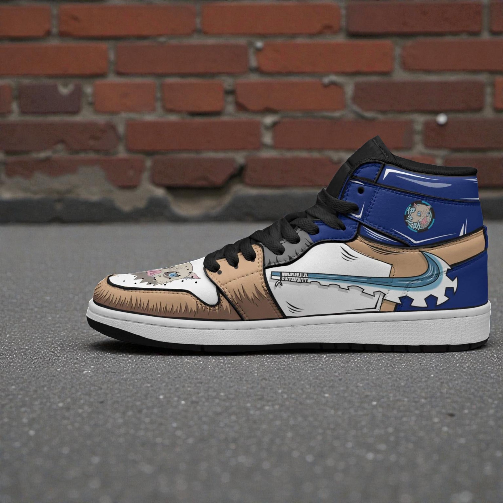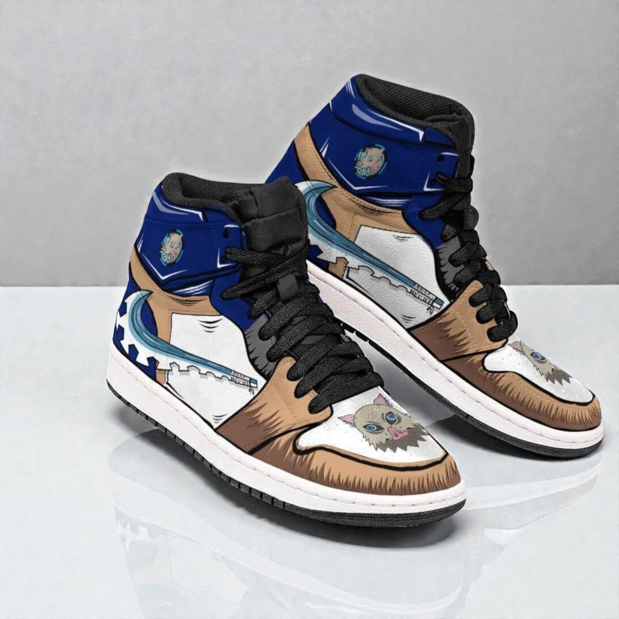 There’s something refreshing about footwear that doesn’t shy away from making a statement. These shoes carry a distinct energy — a mix of playful rebellion and bold color blocking that catches the eye without overwhelming. At first glance, the mix of brown, white, blue, and black segments feels carefully chosen, lending the sneakers a graphic pop-art quality that nods to their anime inspiration. Look closer and the details come alive. An illustrated character art on the toe grounds the design, adding a personal touch that clearly speaks to fans. The curved swoosh graphic weaves through the silhouette, giving movement to the shoe’s mid-top shape, while a small emblem patch quietly hints at its connection to the source material. It’s a clever balance of expressive and wearable. These shoes easily slot into outfits built for both cosplay events and everyday streetwear. Pair them with loose cargo pants or denim that echoes the rugged vibe of the anime character. A graphic tee or layered outerwear would complement their adventurous spirit without feeling forced. Anyone drawn to vibrant style and unafraid to showcase their fandom will find these Inosuke cosplay shoes a thoughtful addition. Ideal for anime fans who want to blend passion with practicality or sneaker collectors looking for something out of the ordinary, they work as a gift that carries meaning beyond simple footwear. It’s footwear that sparks conversation as much as it completes a look.