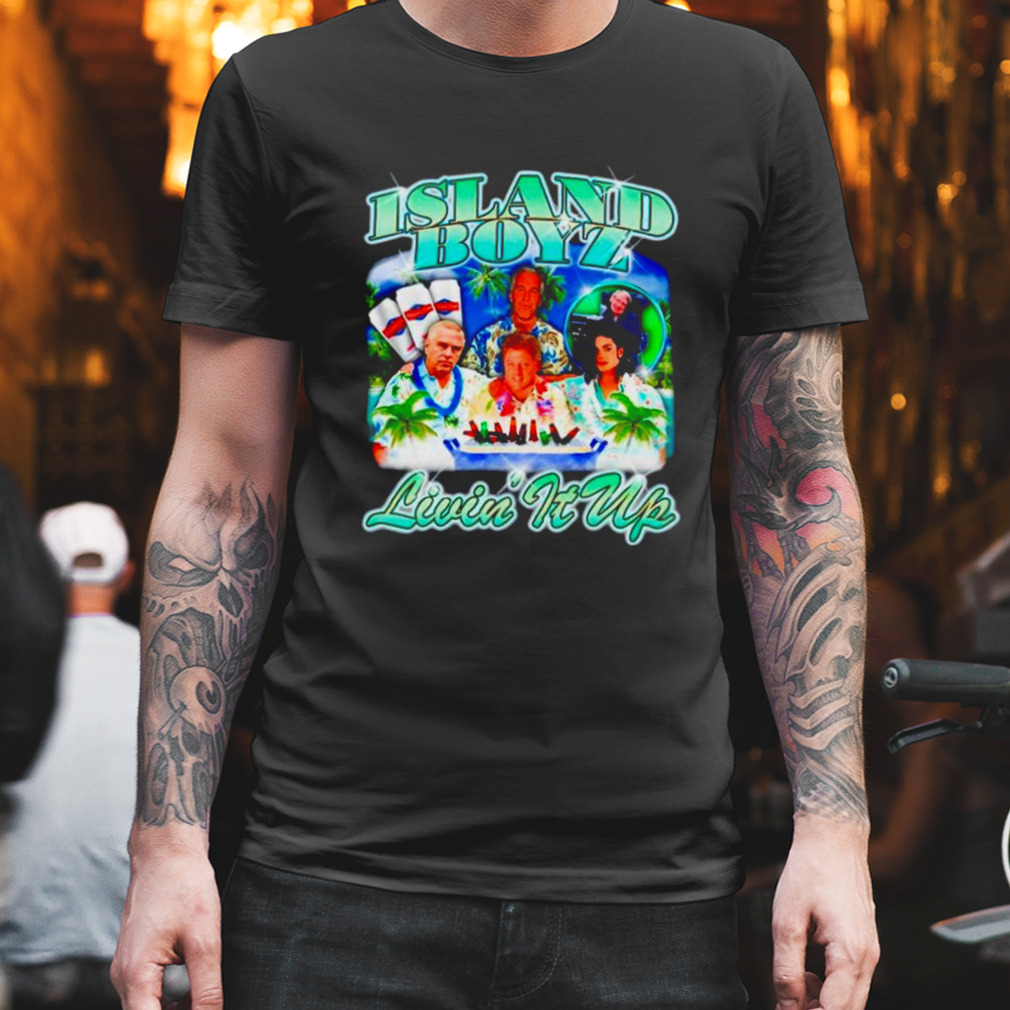 The Island Boyz Livin It Up Shirt is a fun and stylish addition to any wardrobe. This vibrant shirt features a tropical design, with palm trees, waves, and a sunset backdrop. Made from soft and breathable fabric, it is comfortable to wear in any weather. With its relaxed fit and short sleeves, it is perfect for a casual day out or a beach vacation. The Island Boyz Livin It Up Shirt is a must-have for those who love the laid-back and carefree island lifestyle.