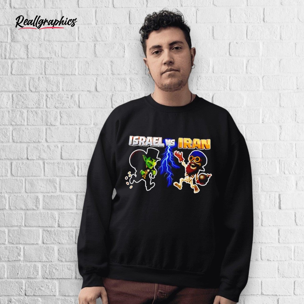 Declare your allegiance! This limited-edition shirt merges gaming fandom with geopolitical intrigue. A conversation starter and a bold statement piece, perfect for gamers with a sense of humor (and maybe a slightly controversial taste). Grab yours before they're gone! Israel Vs Iran Clash Of Clans Shirt