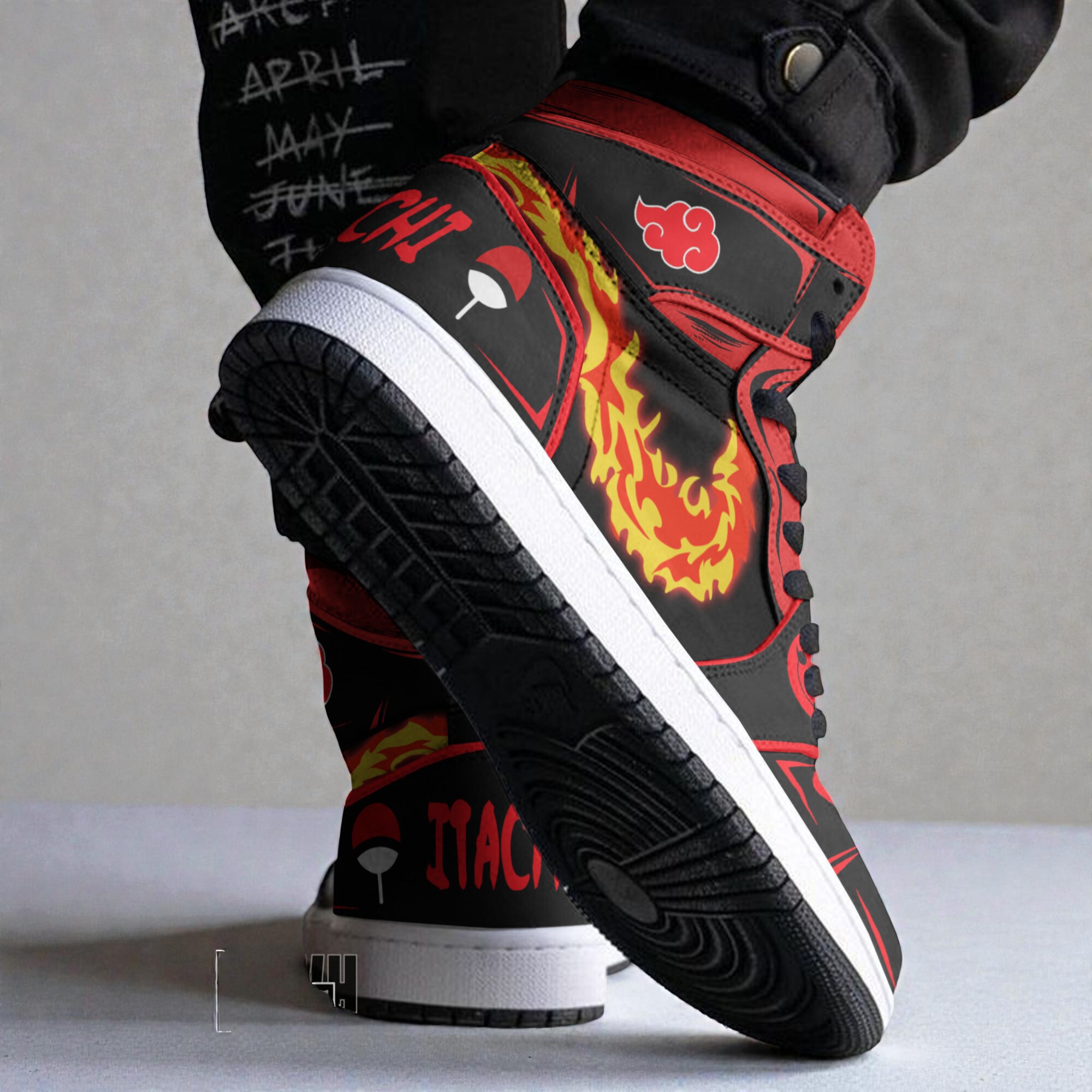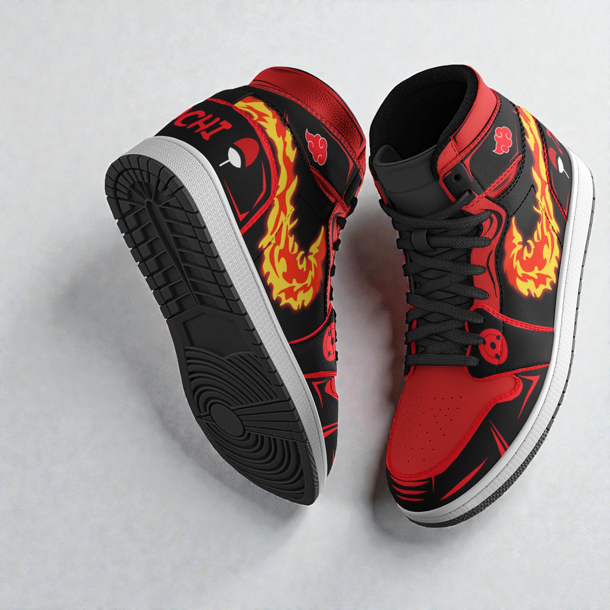 Bold and fiercely detailed, these custom shoes capture the intensity of Itachi’s Fire Ball Jutsu with a design that commands attention. The red and black palette evokes a heated energy, punctuated by swirling flames that suggest motion and power. Intricate Itachi Naruto motifs appear alongside the iconic cloud symbol, weaving narrative and identity into each step. The dynamic patterns never overwhelm but instead balance the composition, giving the sneakers a streetwear edge that feels raw and confident. These are more than just footwear; they’re a statement of allegiance to a character who embodies complexity and strength. The Itachi Fire Ball Jutsu Shoes suit anyone who embraces bold storytelling through style, particularly those who want their passion for Naruto to show without compromise. They slip as naturally with casual wear as they do with cosplay, carrying a spark that’s both energetic and intense. Whether gifted to a longtime anime enthusiast or chosen by someone forging their own path, their craftsmanship holds a unique place where fandom and fashion converge.