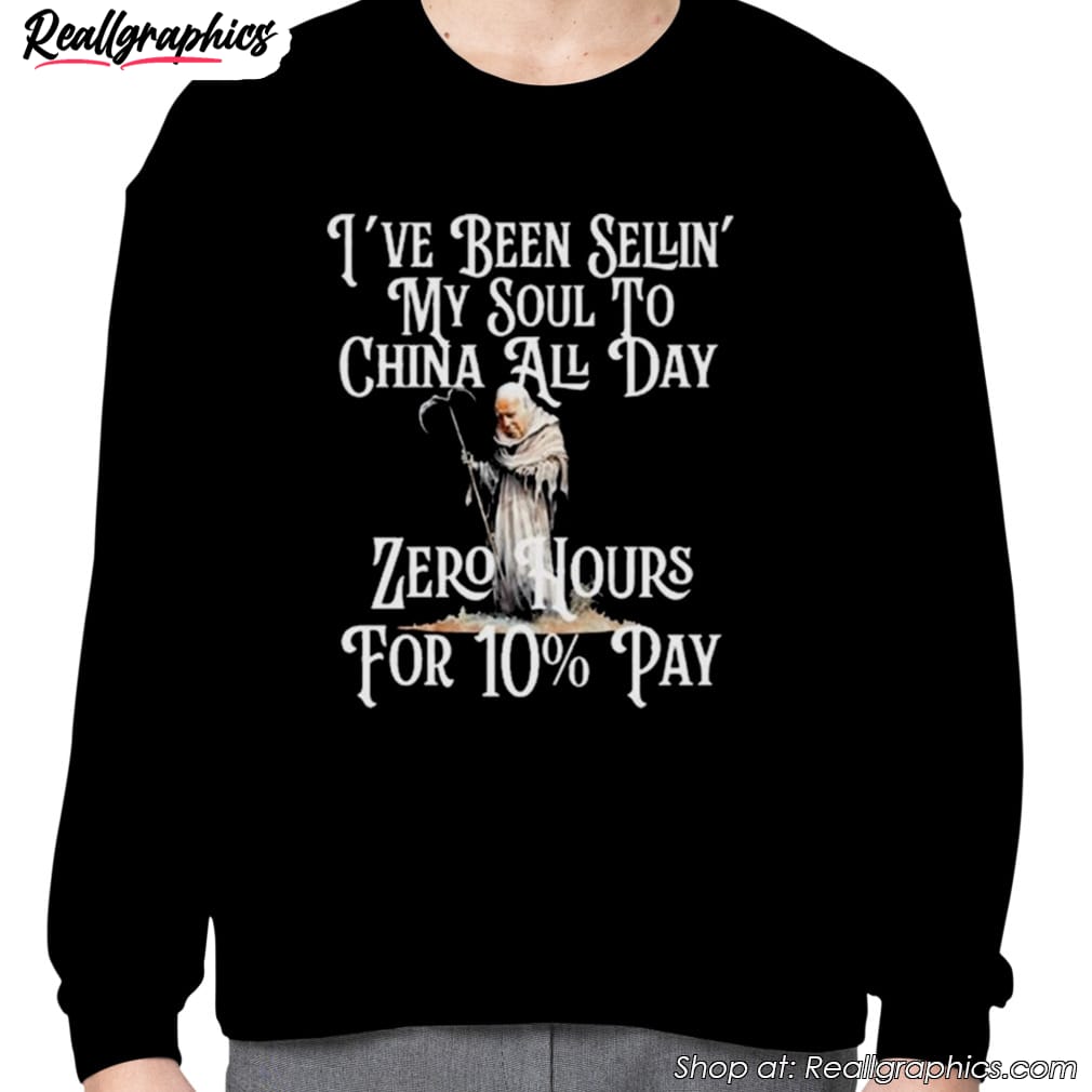 In today’s globalized world, it is no surprise to find ourselves engaged in diverse forms of business transactions. One such transaction taking place is the sale of products that migrate across borders. One eye-catching example is the I’ve Been Sellin’ My Soul To China All Day Zero Hours For 10 Pay T-shirt. Sold at a price of $10, this shirt has gained attention for its provocative slogan. While some may question the ethics behind the production and exchange of such items, it is a reminder of the complex dynamics at play within the international market.