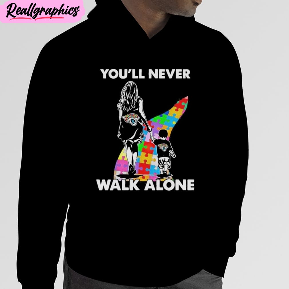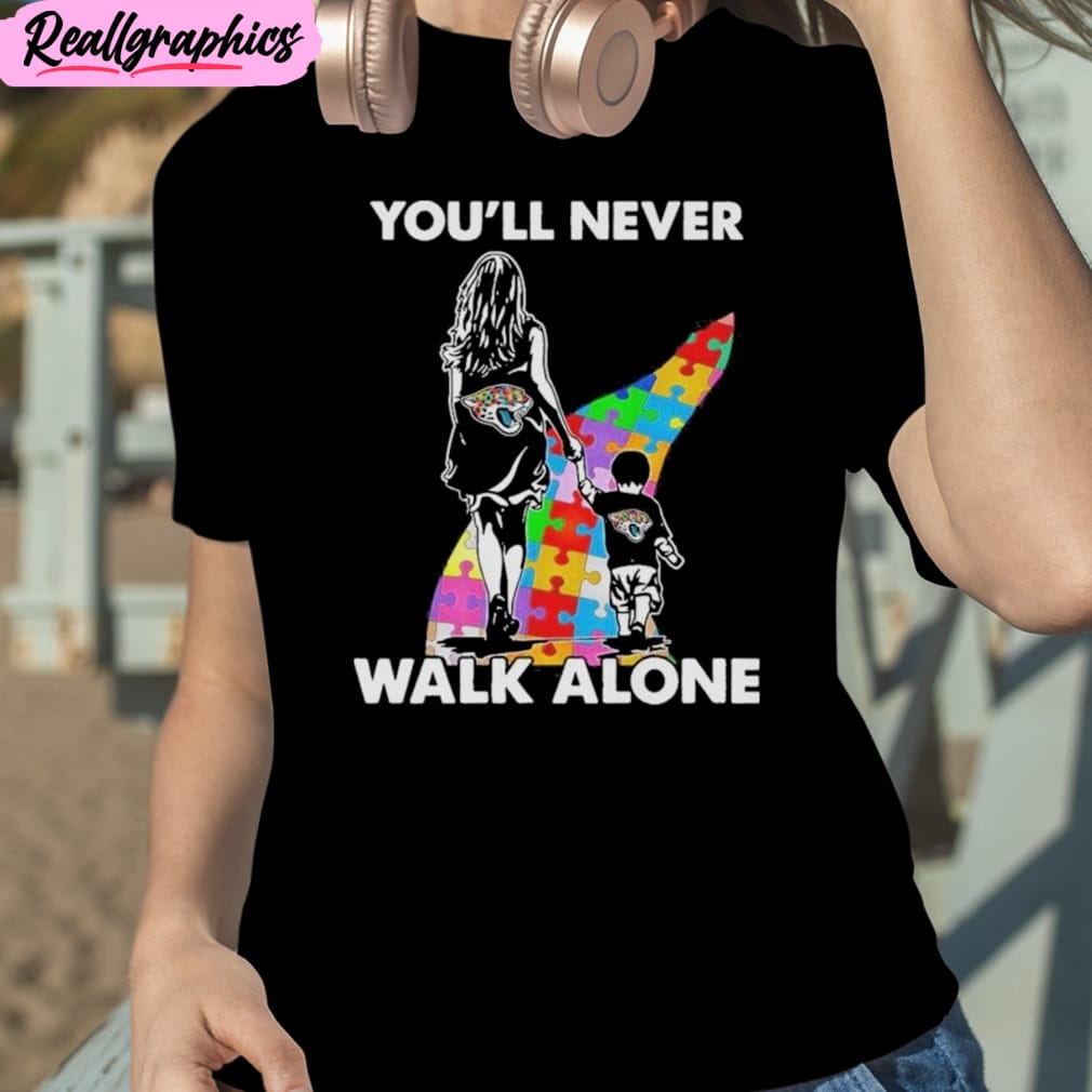 Jacksonville Jaguars You’ll Never Walk Alone Mom And Son Autism Unisex T-Shirt, Hoodie, Sweatshirt details